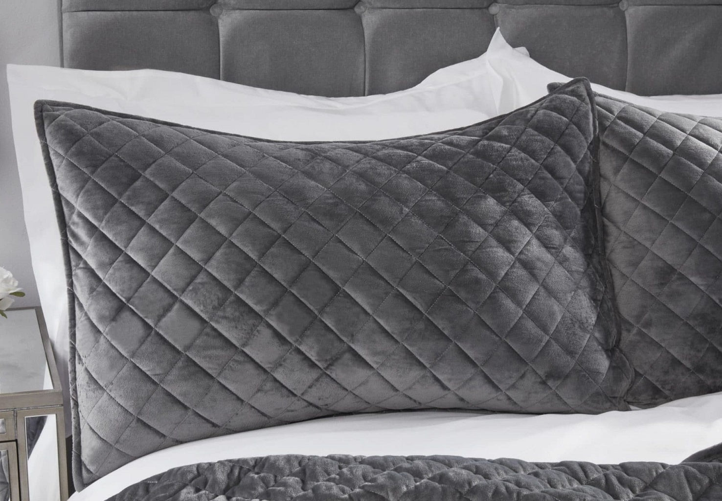 Quilted Velvet Bedspread With Pillow Shams, 220x240cm, Silver Grey