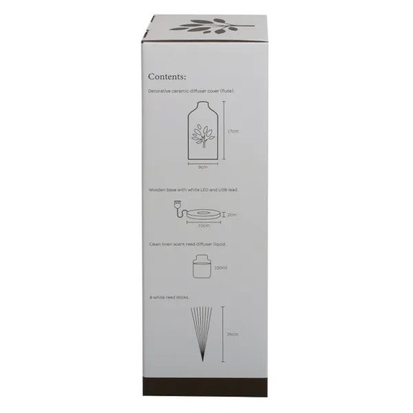 This beautiful, elegant looking ceramic reed diffuser comes complete with a bottle of clean linen fragranced liquid which sits on the LED light.