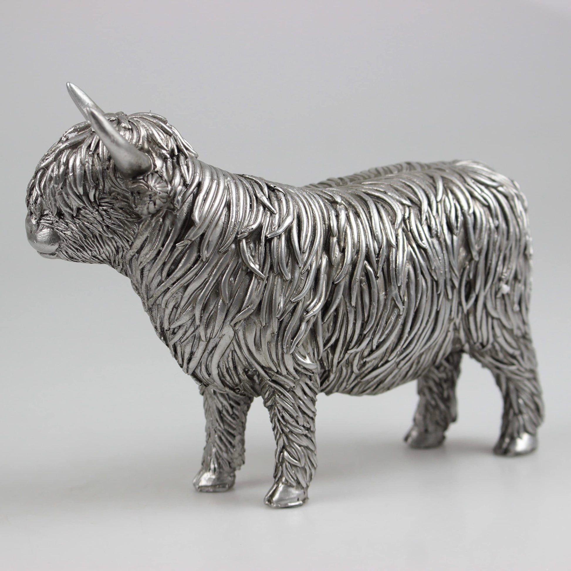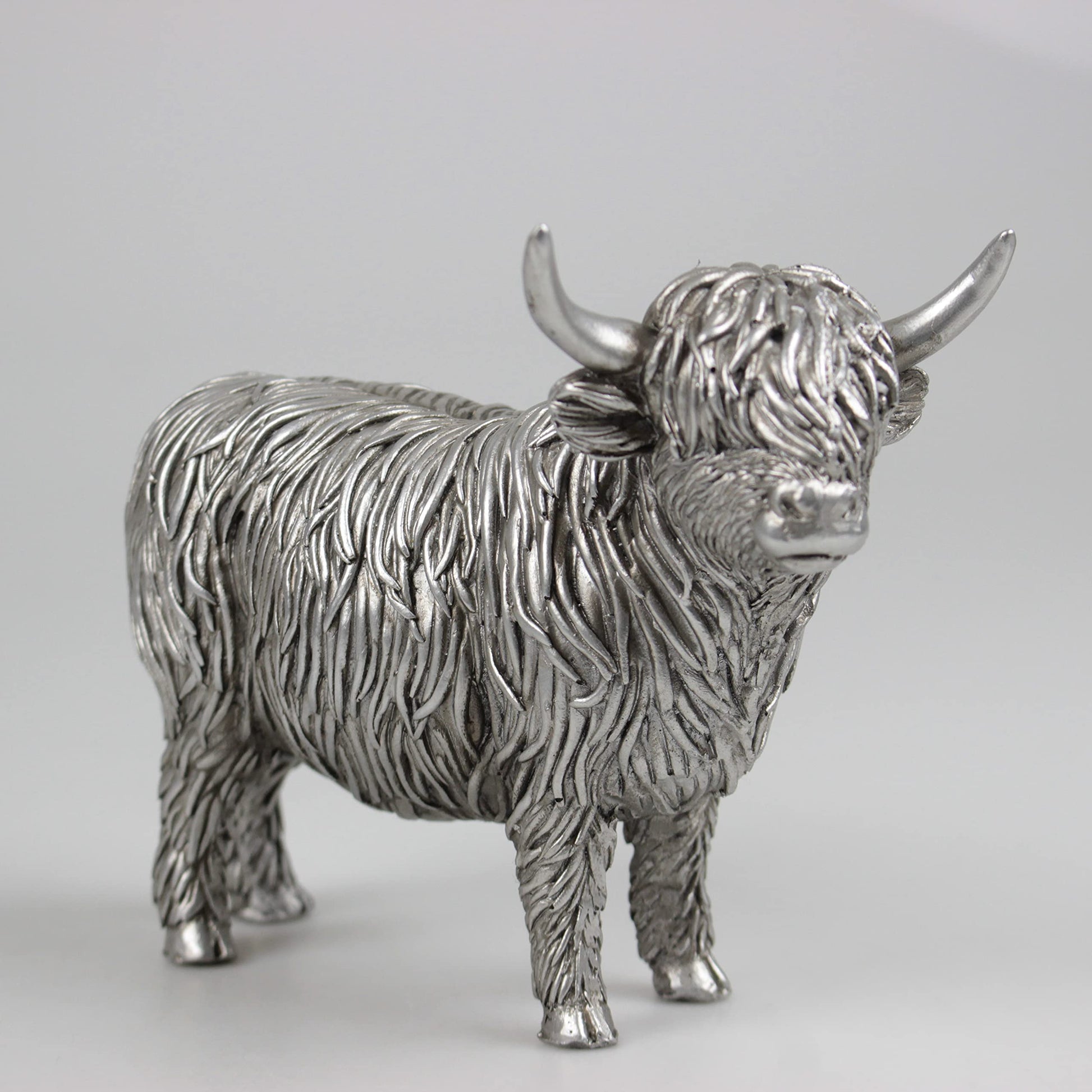 Silver Highland Cow Ornament Figurine is exquisitely detailed. Made from resin and finished in silver. ideal decoration for your living room, bedroom, and office. The item is new and complete with the Leonardo box! Product Dimensions: Approx. H19xW8xL14 cm