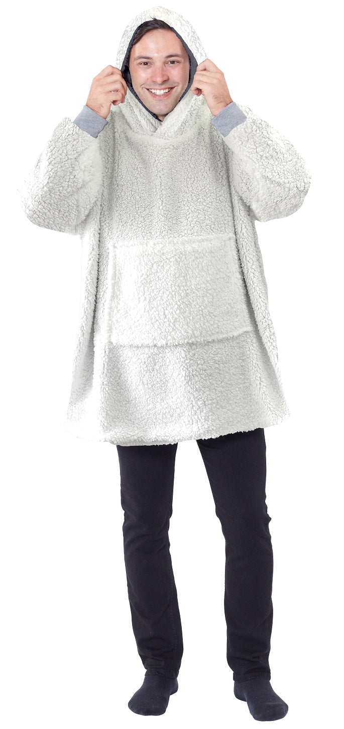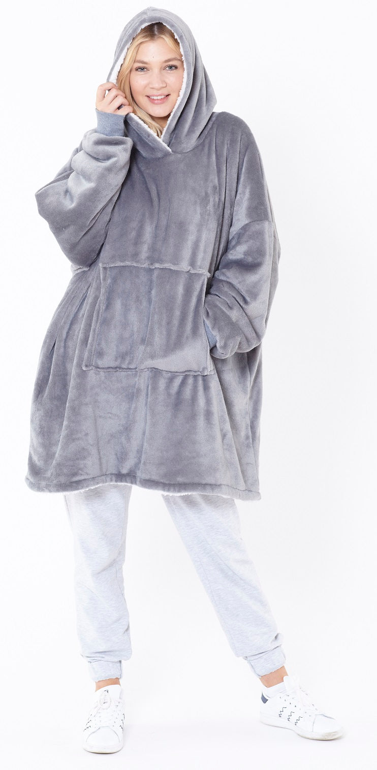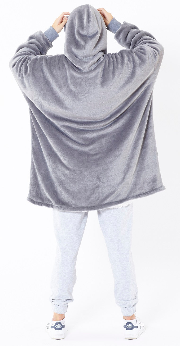 Reversible Oversized Sherpa Hoodie Blanket, Grey