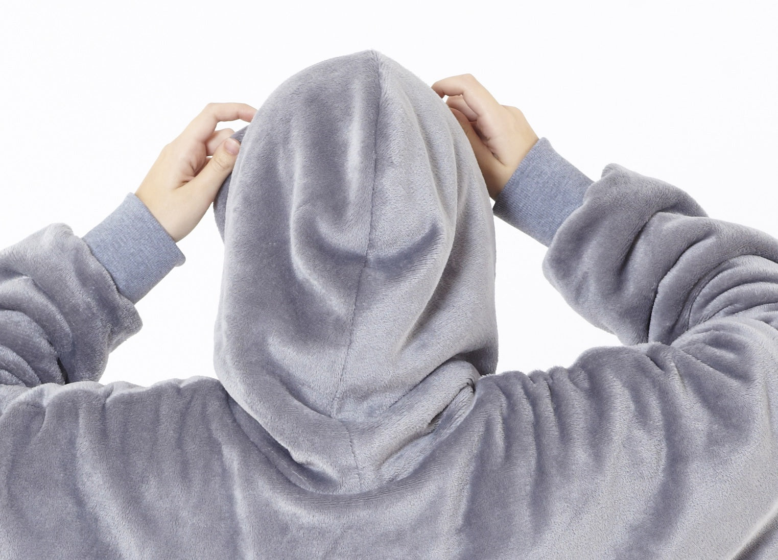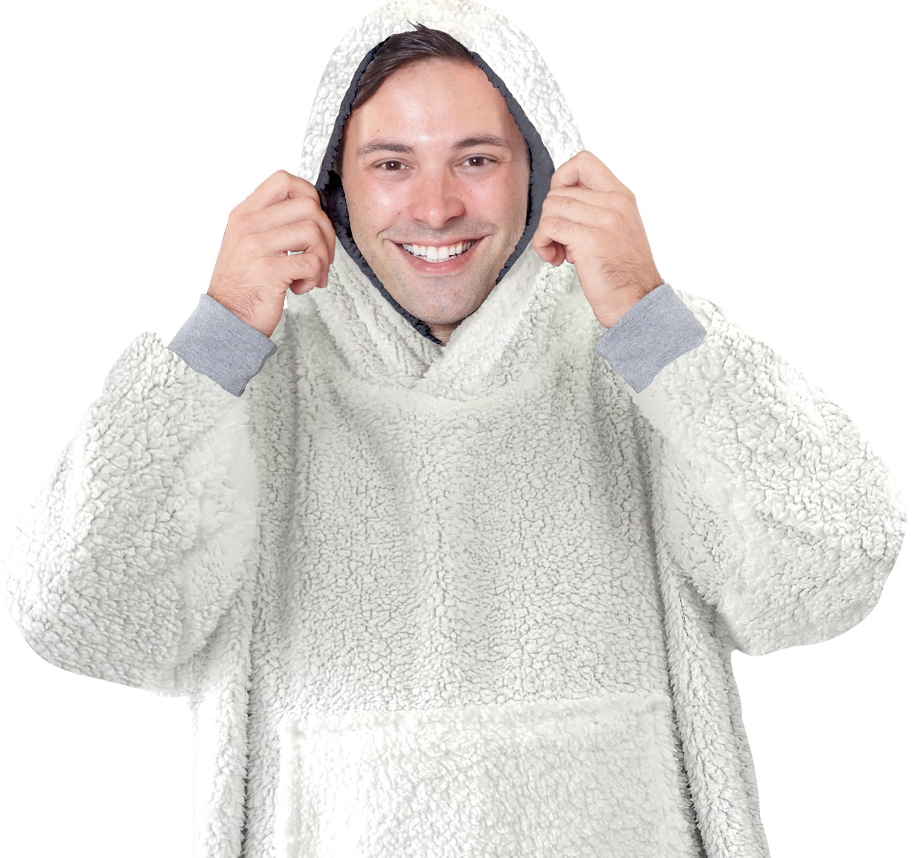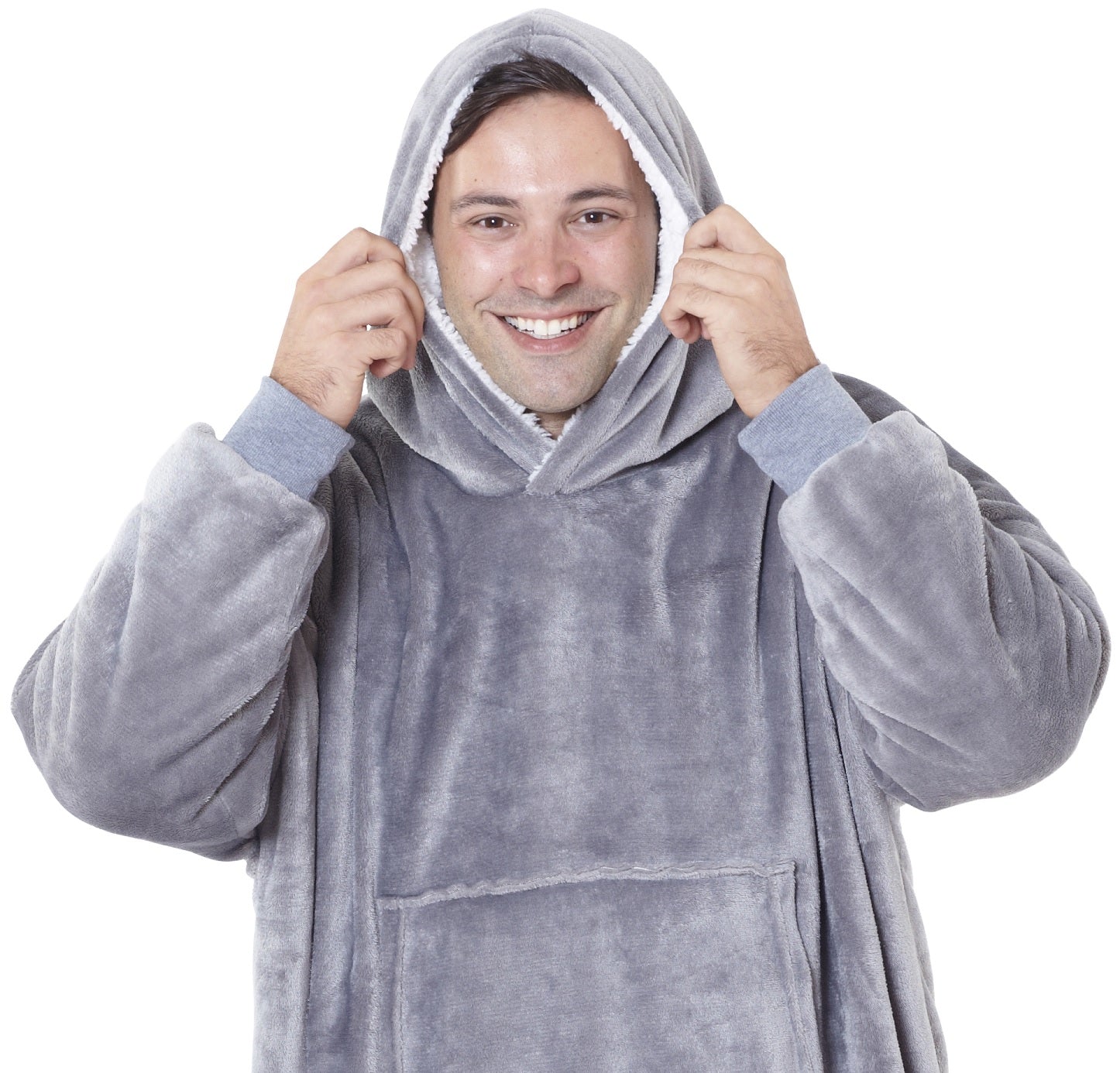 Reversible Oversized Sherpa Hoodie Blanket, Grey