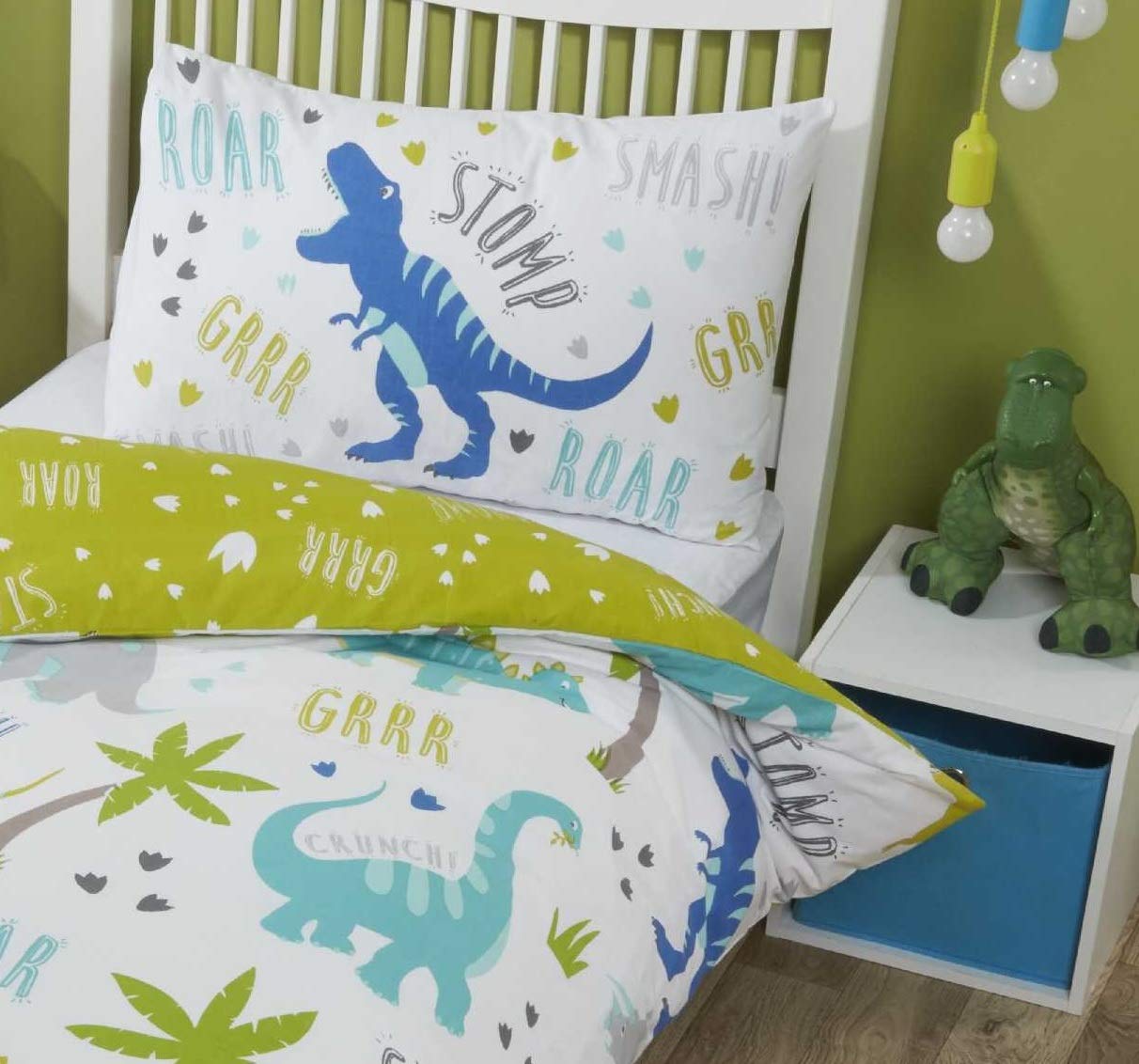 Roarsome Dinosaur Toddler Junior Cot Bed Duvet Cover Set Green