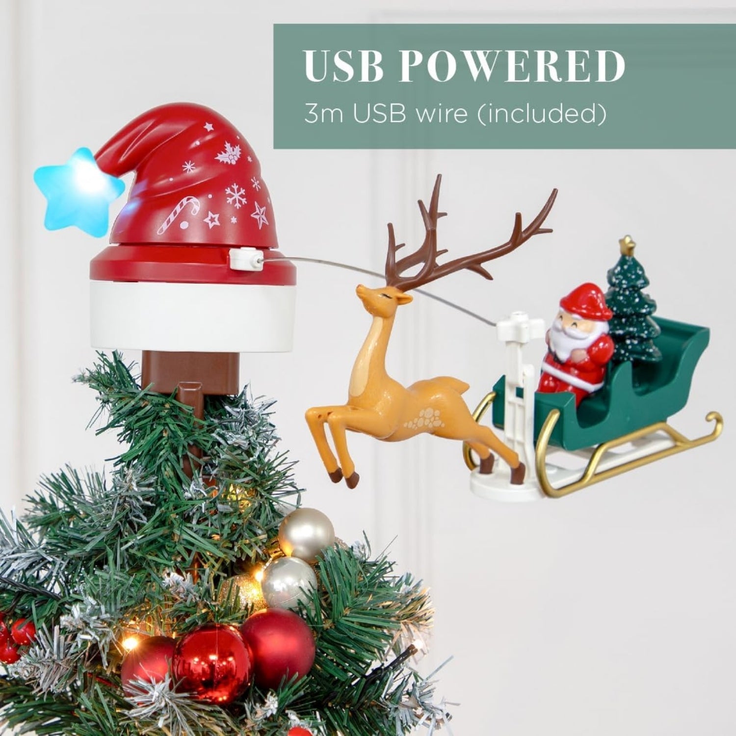Rotary Santa Sleigh Christmas with LED Lights Tree Topper