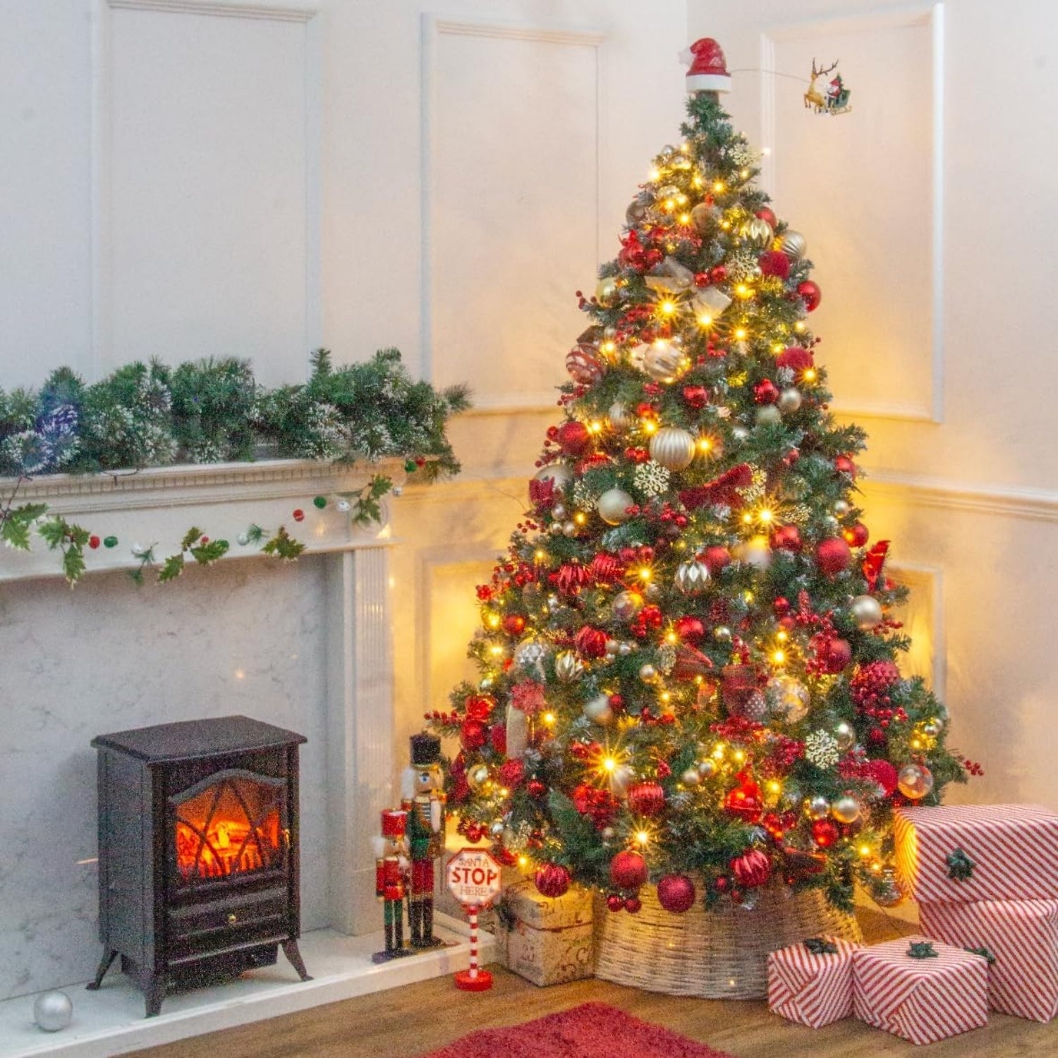 Make your Christmas tree stand out with this Rotary Santa Sleigh Tree Topper. Santa’s sleigh rotates gently at the very top, surrounded by warm LED lighting to cast a merry glow. Designed to sit securely on the tree peak, it’s crafted to be lightweight yet durable. A festive and animated finishing touch for your holiday display.
