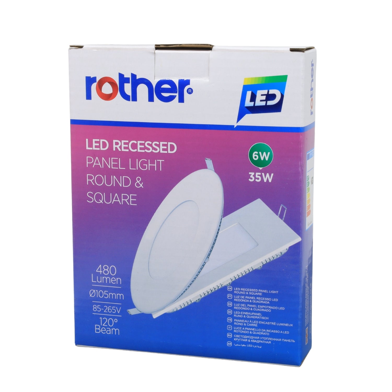 The Rother square LED recessed panel light is an energy-efficient lighting solution designed for sleek and modern interiors. Consuming only 6W of power while delivering 480 lumens, it serves as an excellent replacement for traditional 35W bulbs. Its wide voltage compatibility (85–265V) ensures flexibility for various electrical setups. With a 120° beam angle, it provides even light distribution, making it ideal for homes, offices, and commercial spaces.