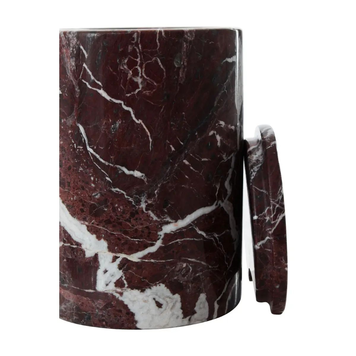 Crafted from red marble with delicate white veining, this ice bucket is more than just a functional piece; it's a luxurious statement for your space. What sets it apart is not only its elegant appearance but also the natural heat-resistant properties of marble, which help keep your ice from melting too quickly, ensuring your beverages stay refreshingly cold.