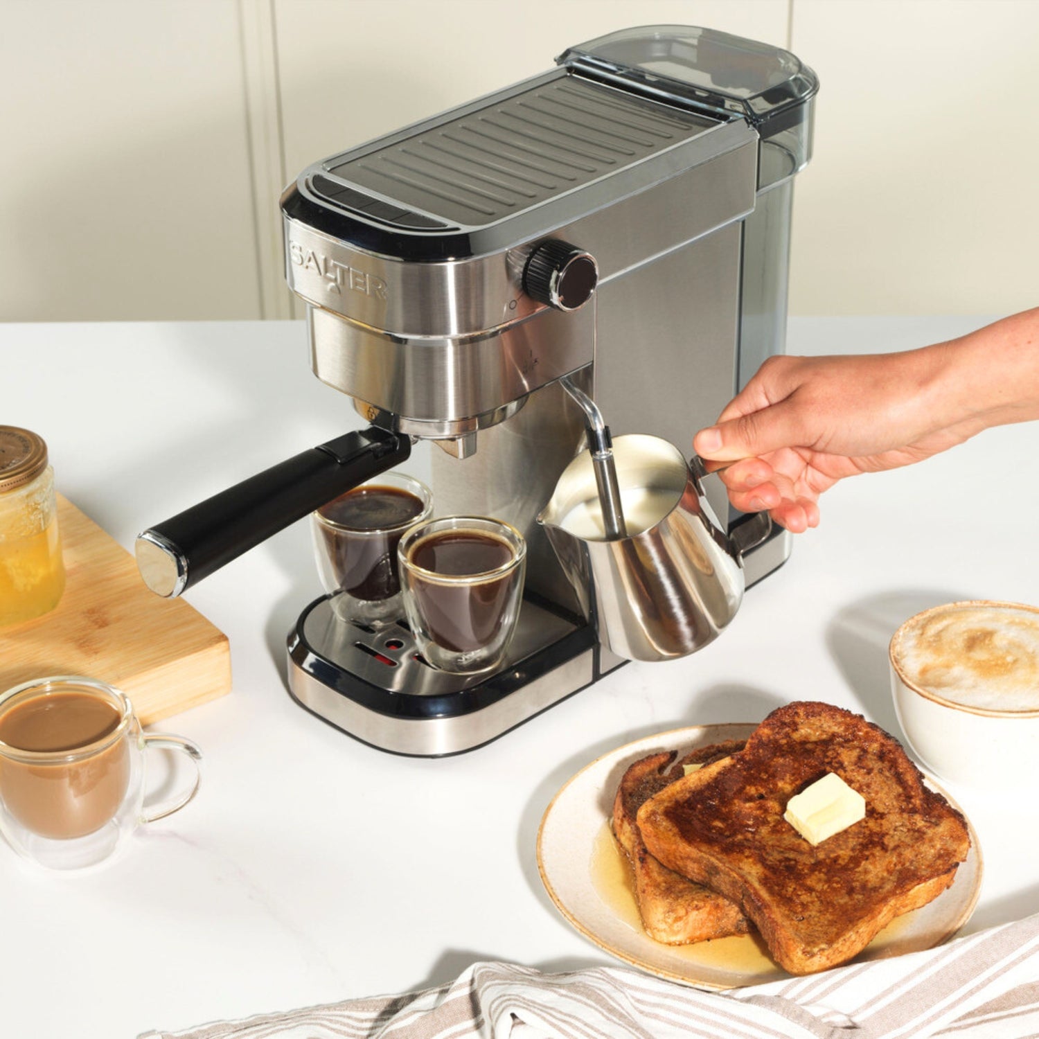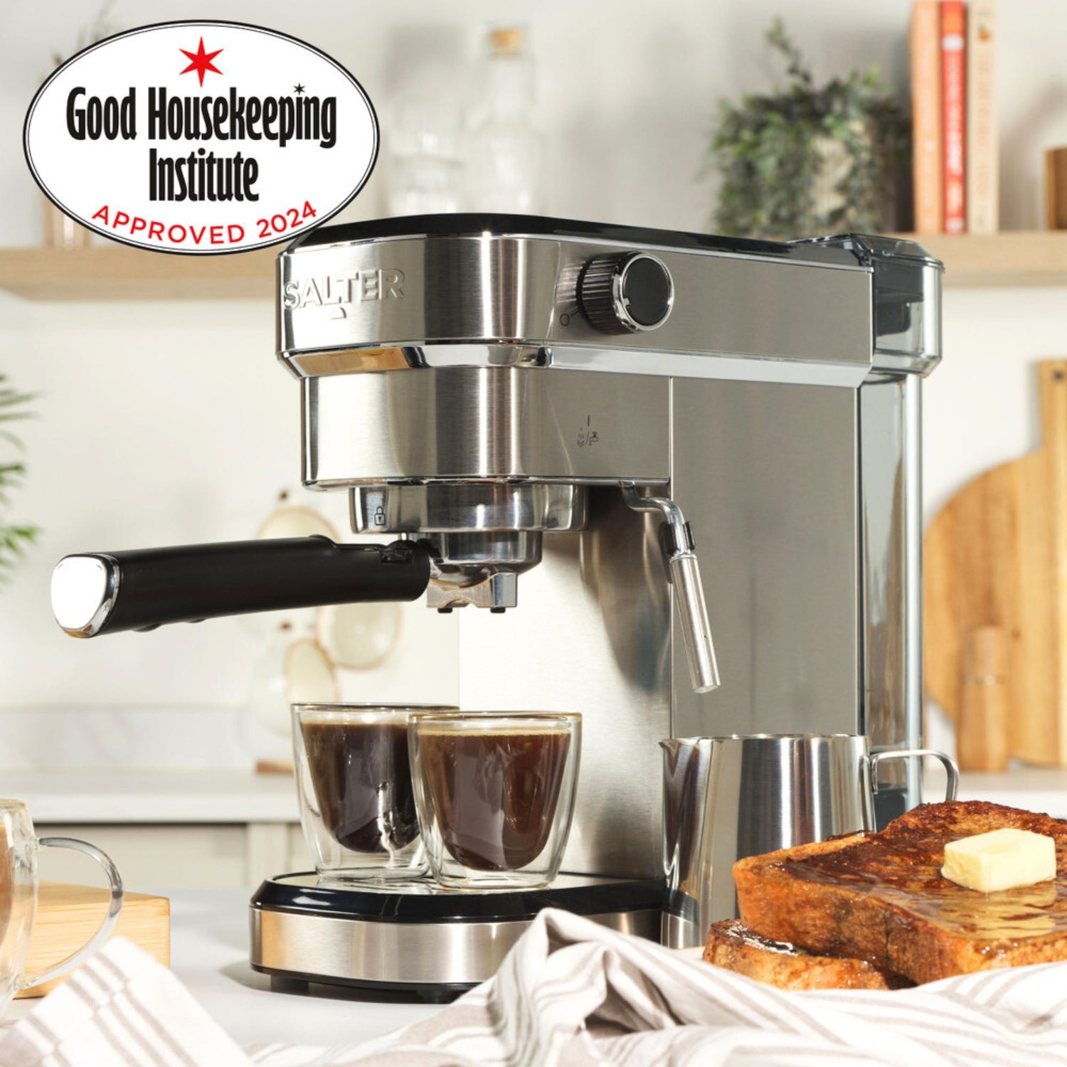 Salter 1.1L Stainless Steel Espresso Machine Double Shot Coffee Maker