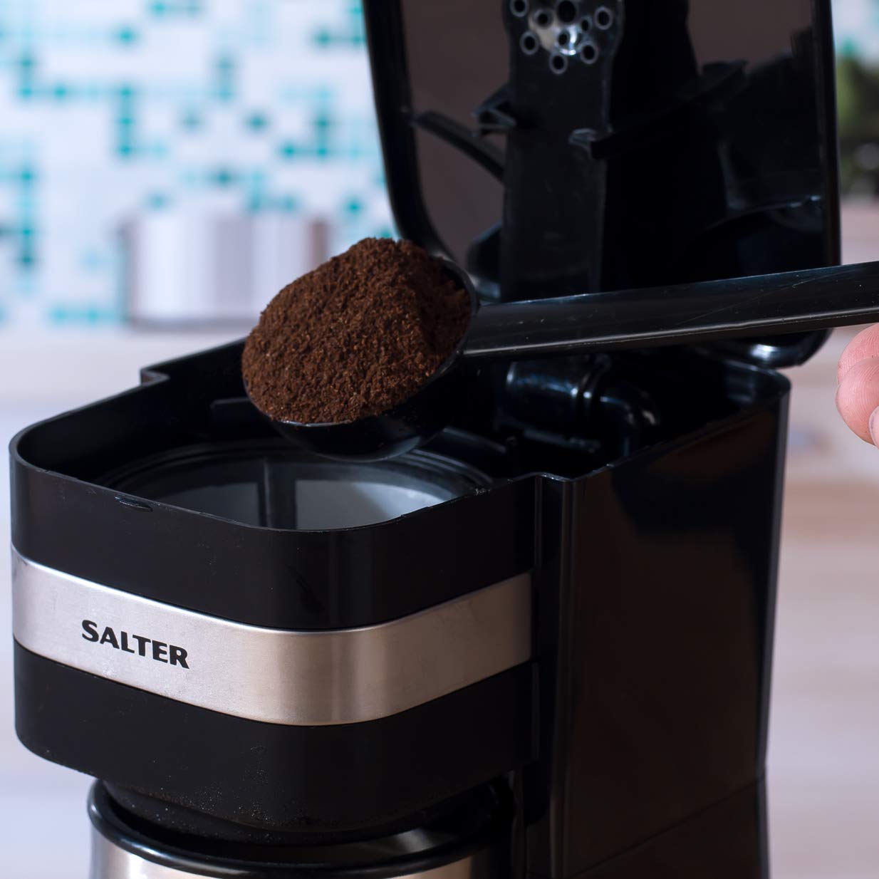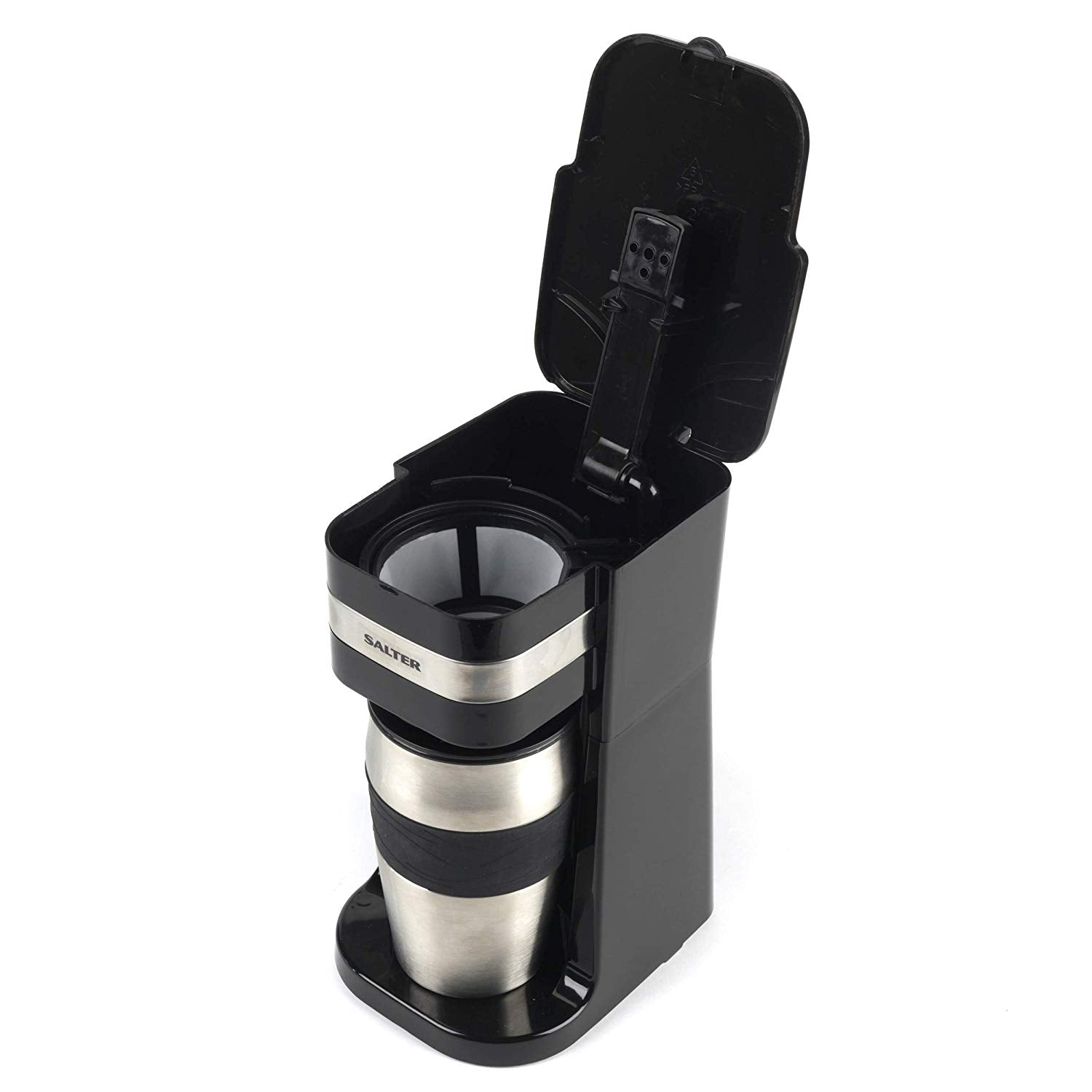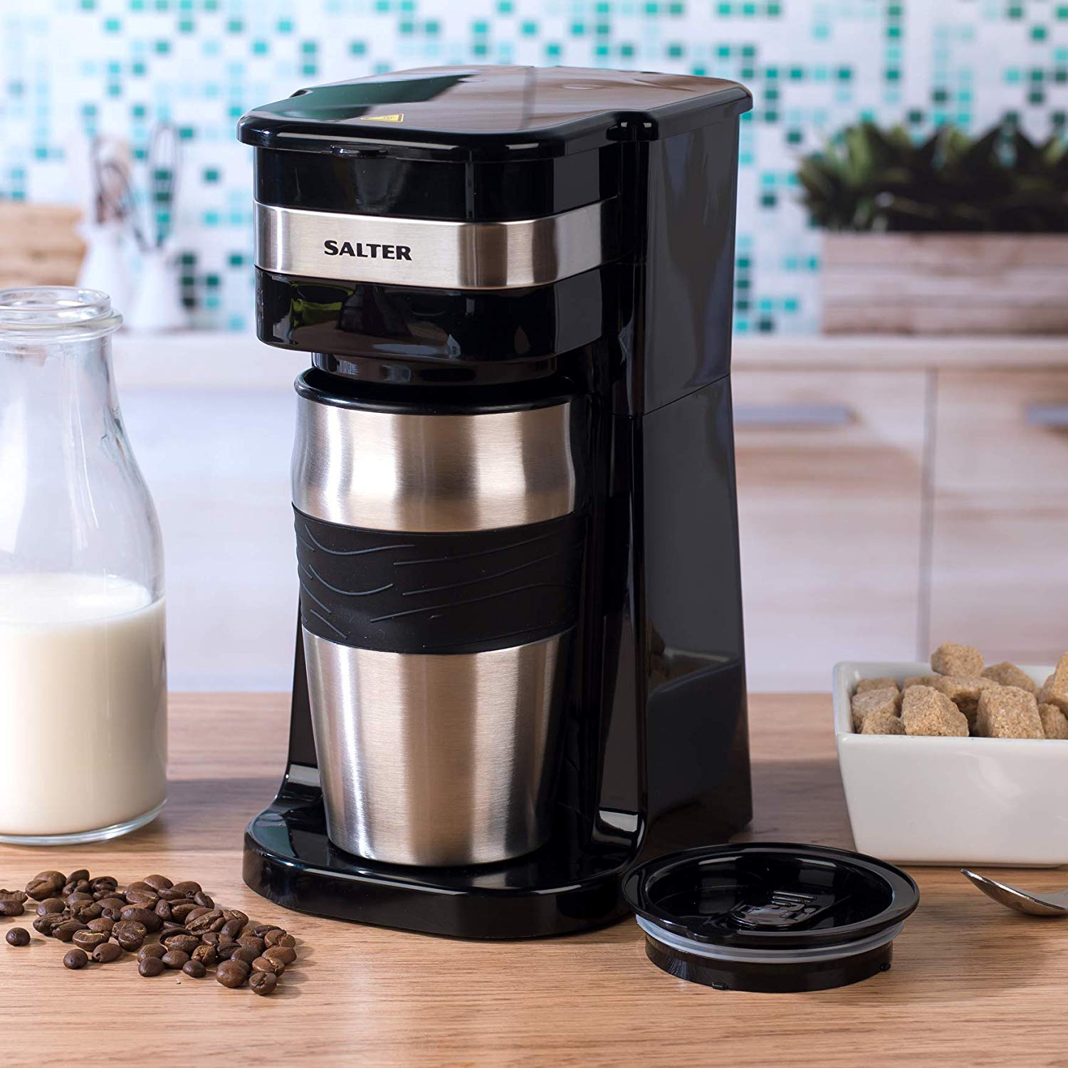Enjoy a delicious freshly filtered coffee every morning without the cost of stopping at The coffee shop by using this fantastic Salter Coffee maker to go. Ideal for the daily commute, It is Quick and easy to use so you can make a cup of fresh coffee in minutes, using 700 W power along with one touch operation to effortlessly brew and go. It has a reusable filter to save money on paper filters and comes with a 420 ml stainless steel travel mug, whilst the compact design fits in any kitchen.