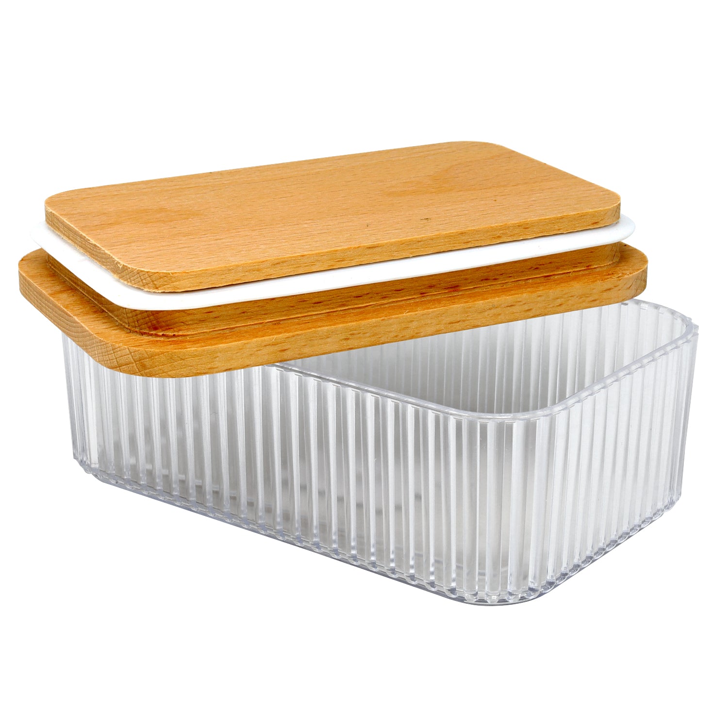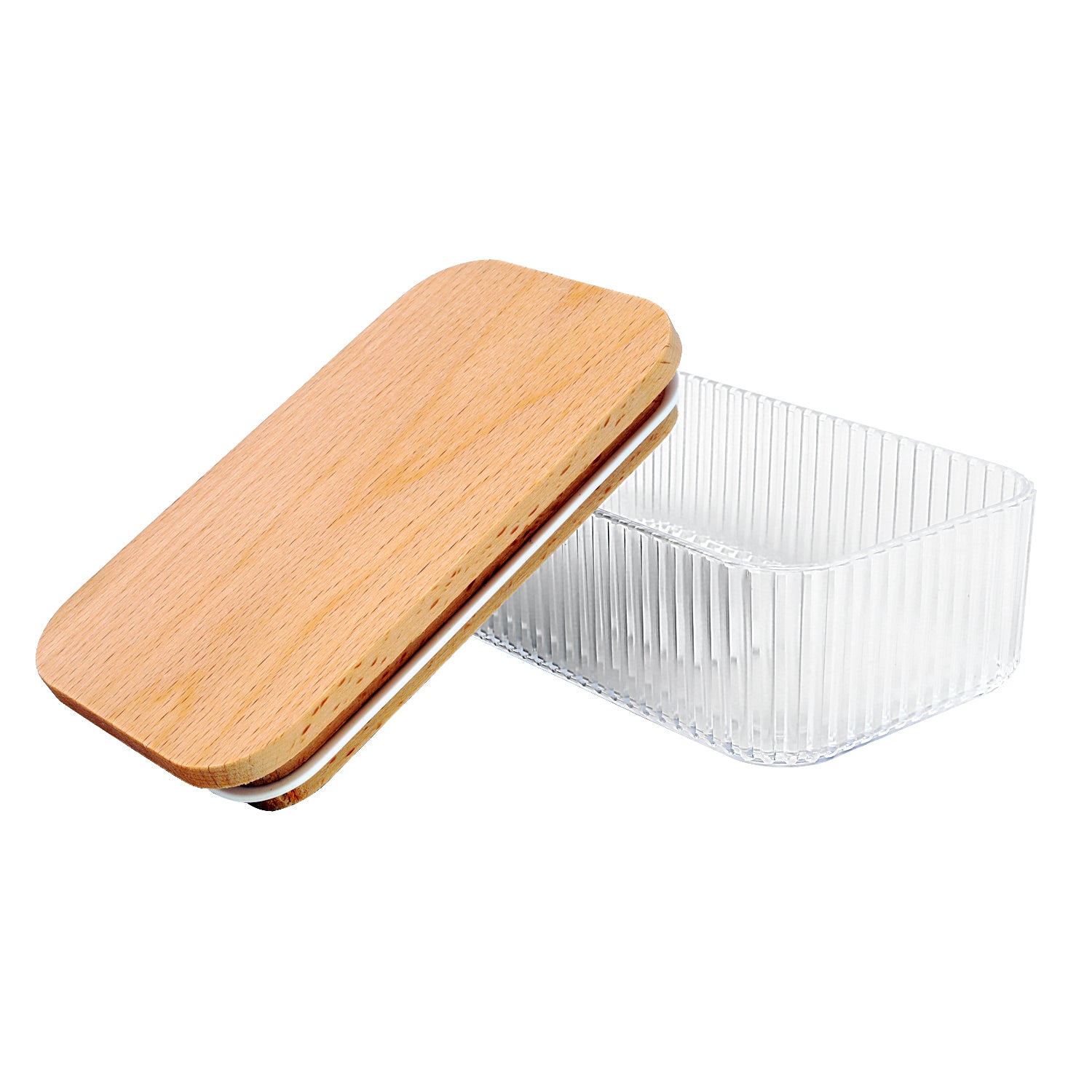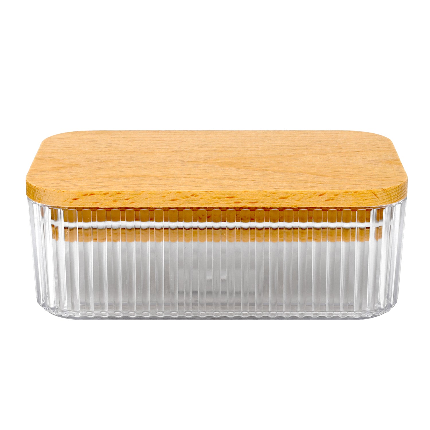 Samba 500ml Clear Ribbed Butter Dish With Wood Lid