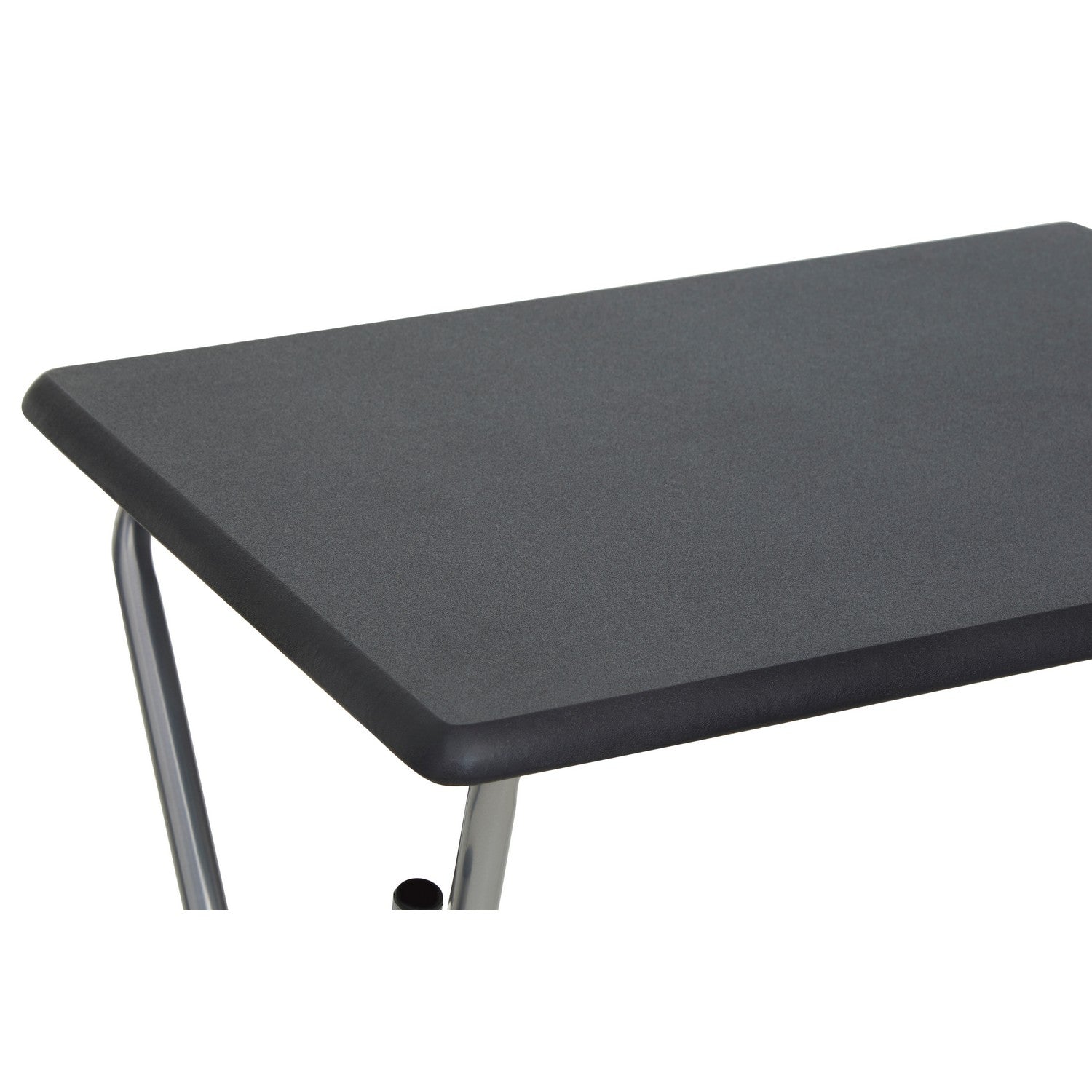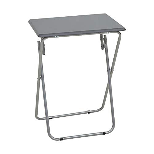 The black square top with bevelled edge neatly sits above non-locking legs and form a monochrome contrast with the metallic silver shade. Ideal for providing extra space when needed, this table folds neatly flat and can be tidied away when not in use. Approx. product dimensions: 38 x 48 x 66cm.