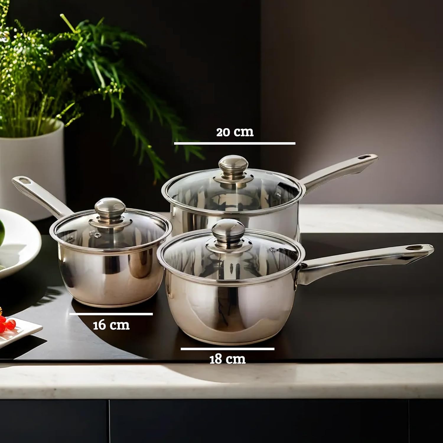 Set of 3 Stainless Steel Saucepans 16-20cm