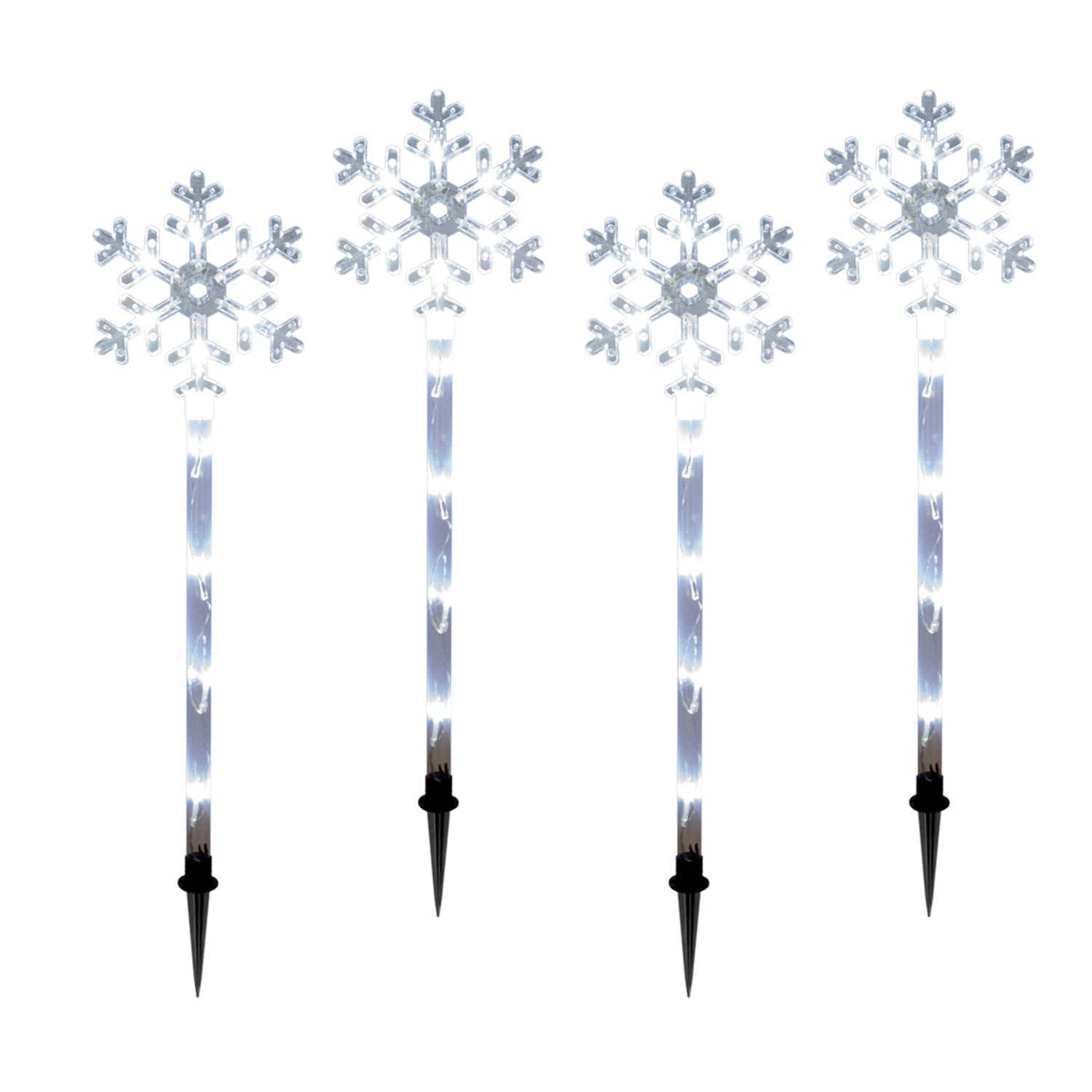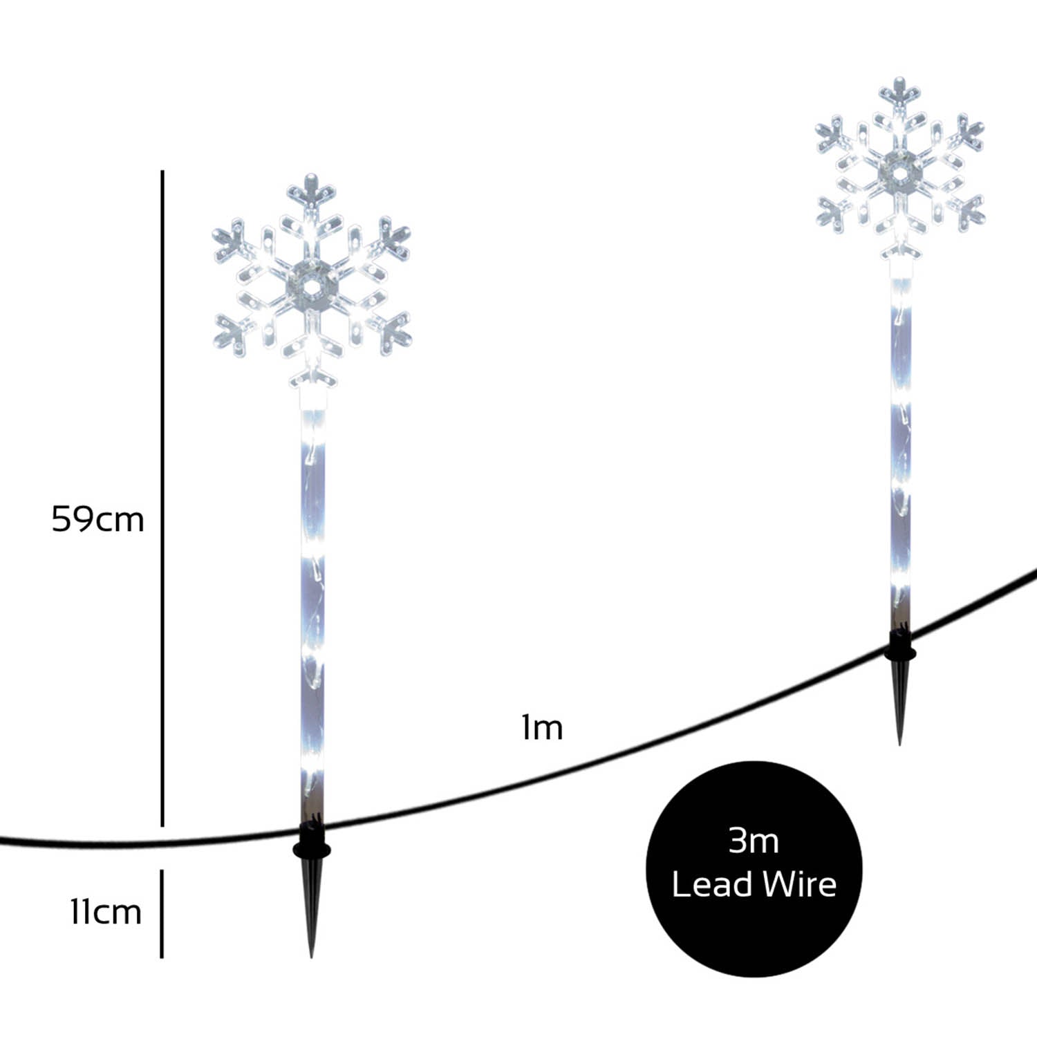 - This fantastic set of 4 snowflake LED stake lights are the perfect festive accessory to bring some fun, joy and colour to the garden.