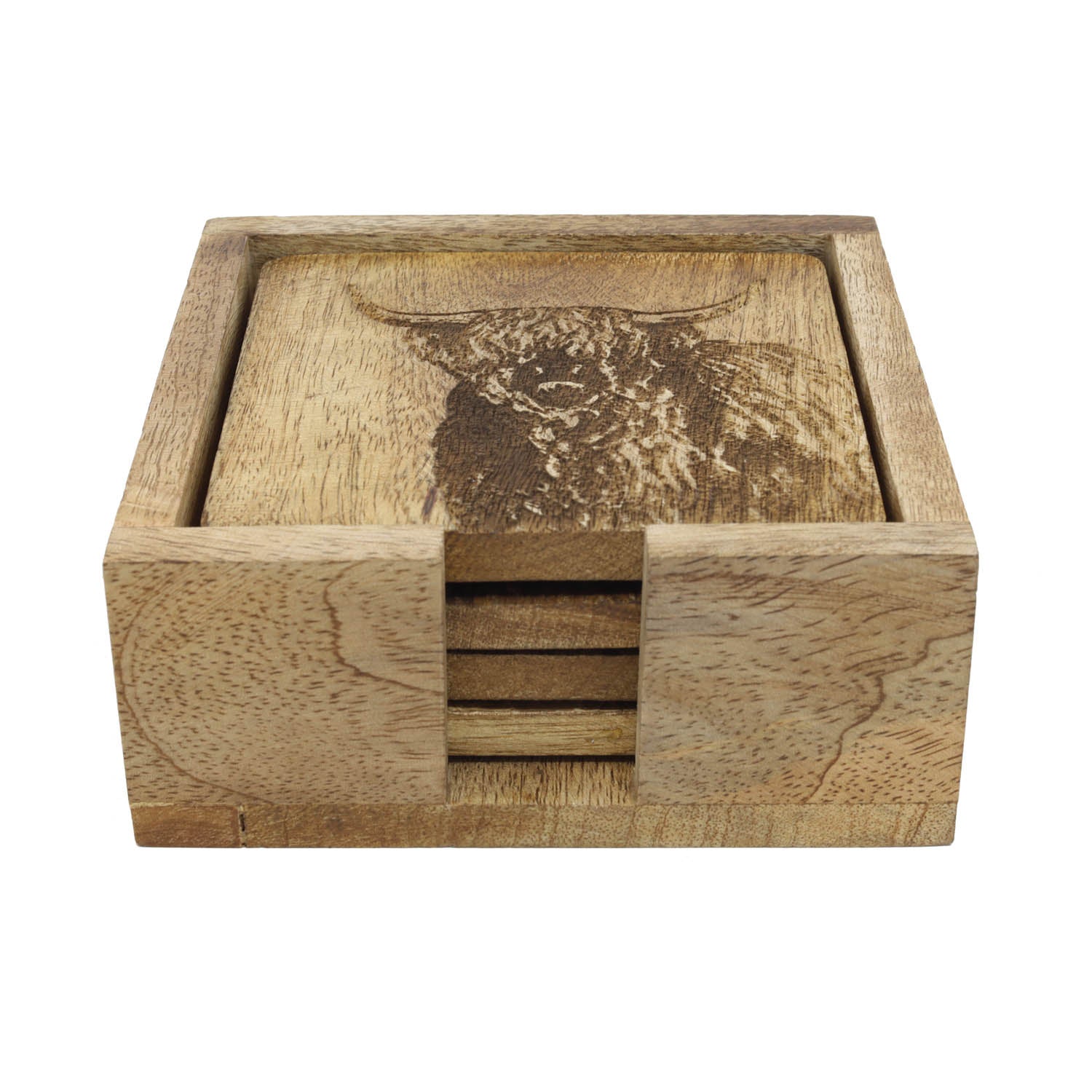 Set Of 4 Square Wooden Coasters Cow Design