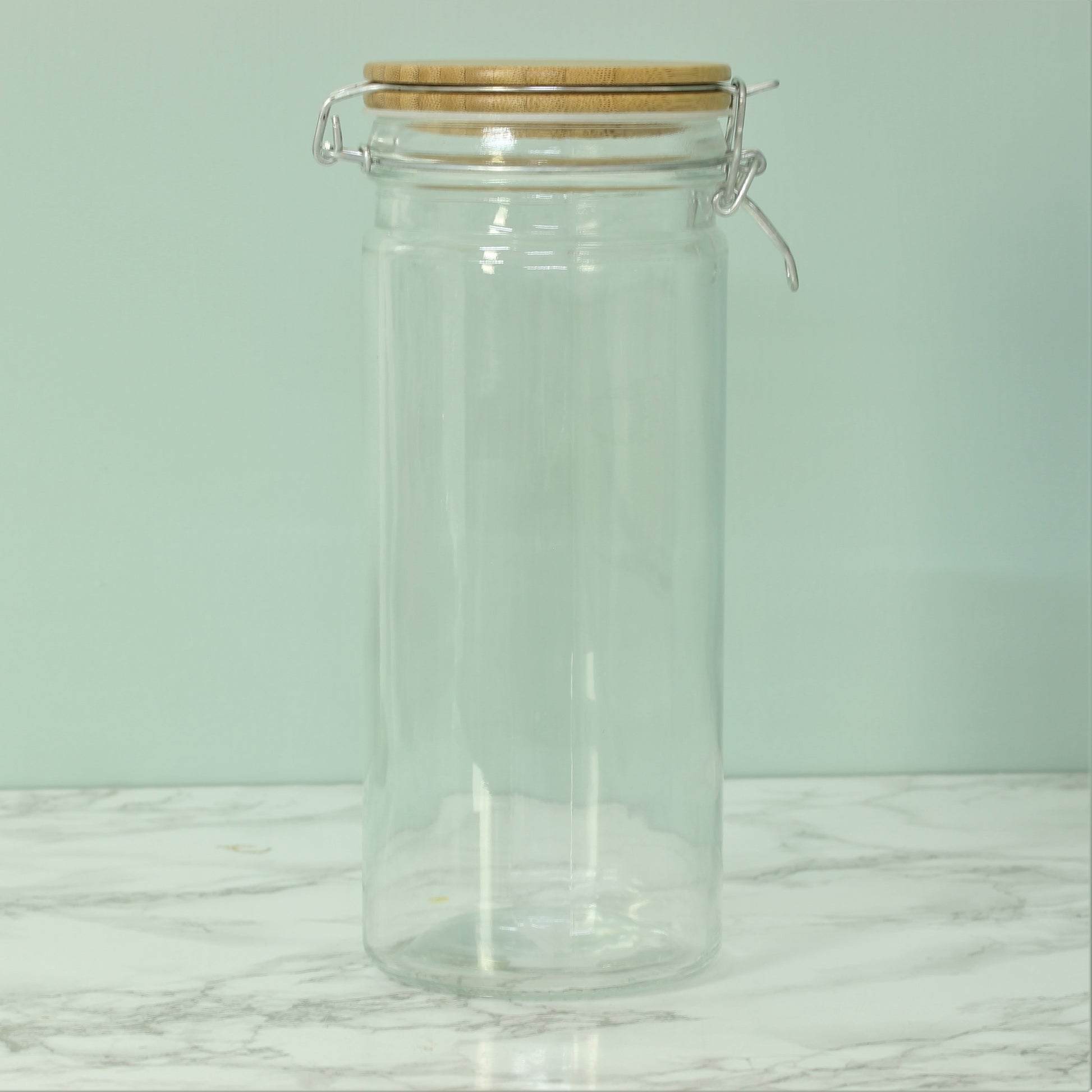 This tall glass jar is ideal for storing your favourite pasta and dried foods. The glass jar is a tall cylindrical shape and is made from strong and heavy glass. The lid is made from wood with a classic clip top structure to provide airtight storage to ensure maximum flavour and freshness is preserved.