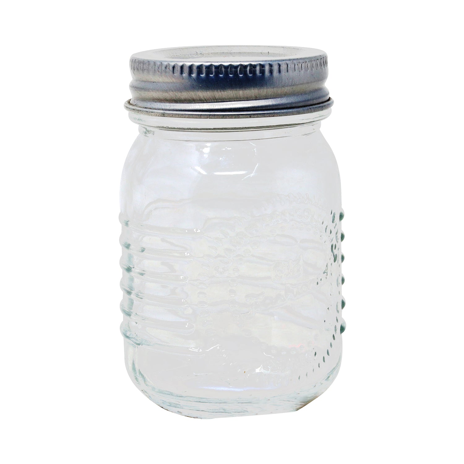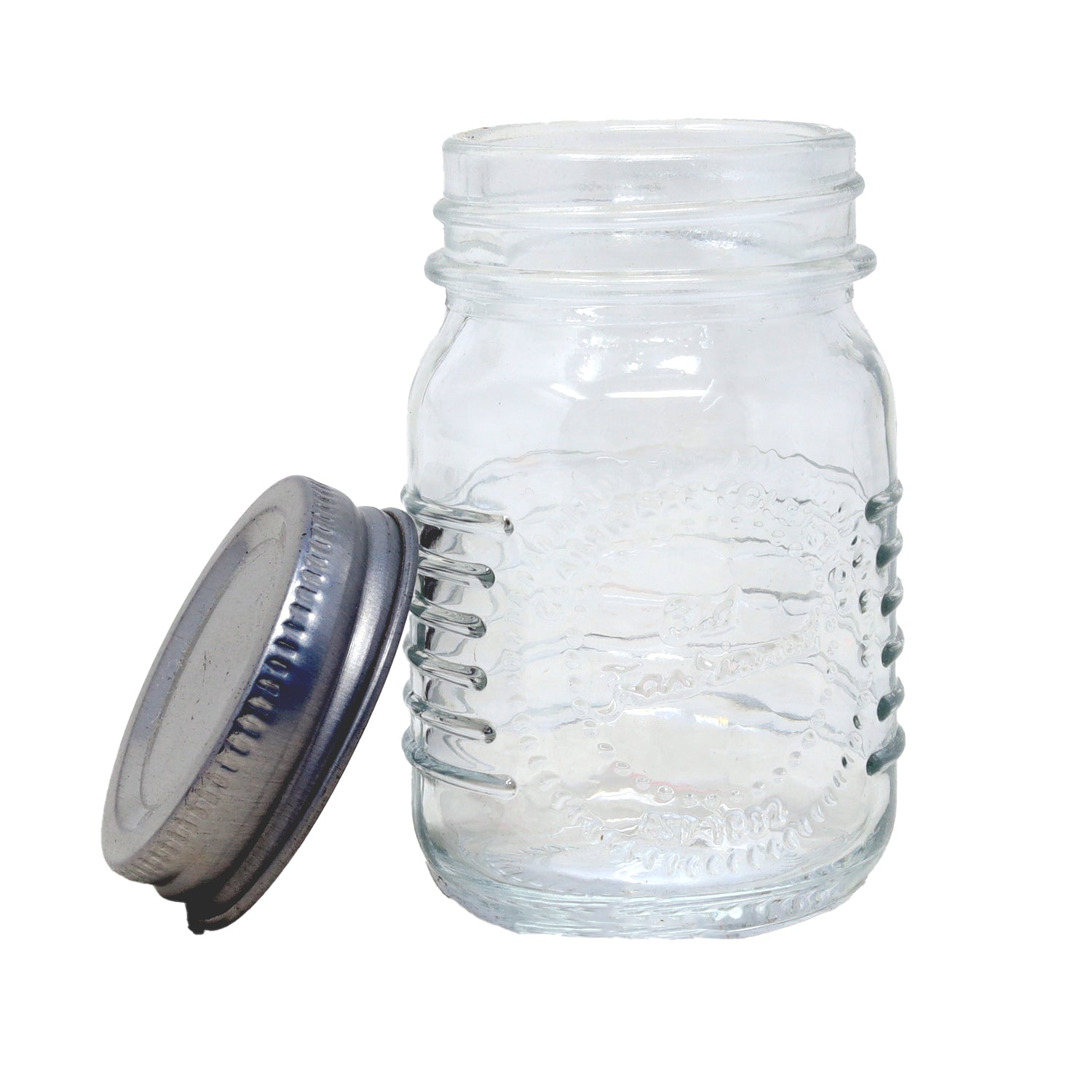 These 'Old Fashioned' screw top jars are ideal for all sorts of produce. Think herbs & spices, maple syrup or honey, homemade candles. There are so many ways this mini 70ml mason jar could be used. it's embossed with the 'Old Fashioned' logo and has 6 raised ridges running midway around the container. The jar comes with a silver metal screw lid.