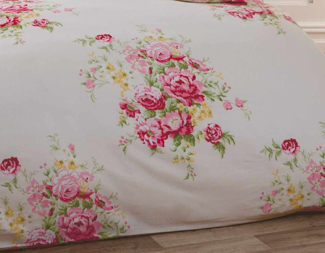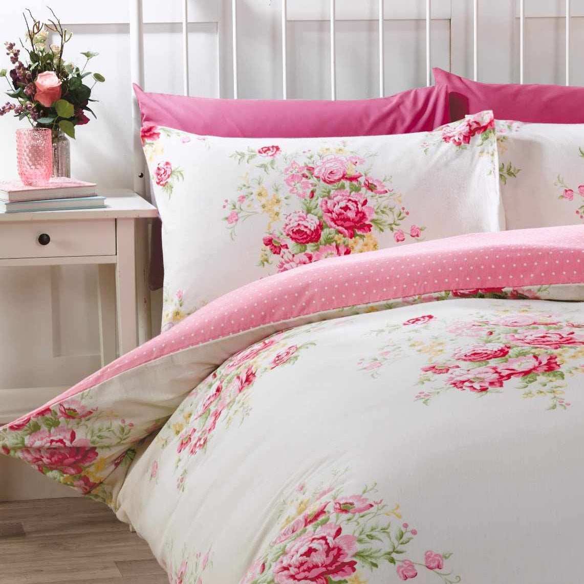 This luxury, soft and warm duvet cover set has shabby chic design on it and polka dot design at the reverse. Material: 100% brushed cotton, it is machine washable. This set includes 1 x king duvet cover and 2 x pillowcases, duvet cover size is 230cm x 220cm (91" x 87") (Approx) and pillowcase size is 48cm x 74cm (19" x 29")(Approx).
