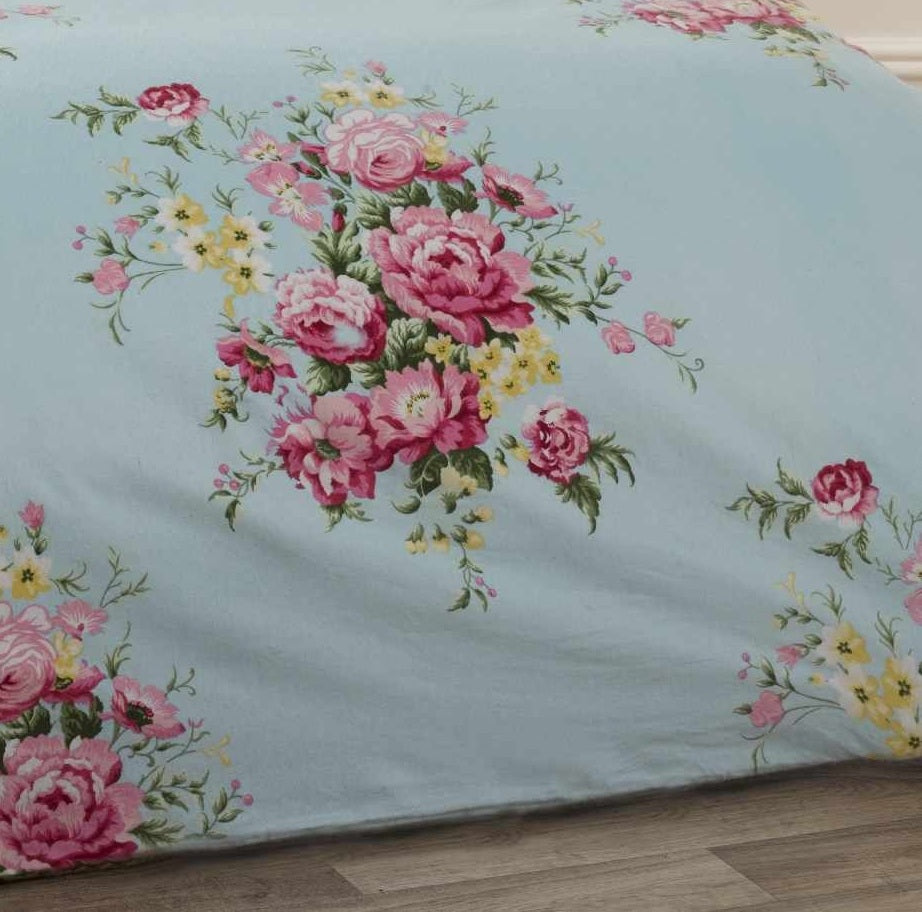 Shabby Chic Brushed Cotton Flannelette Duvet Cover Set, Super King, Blue