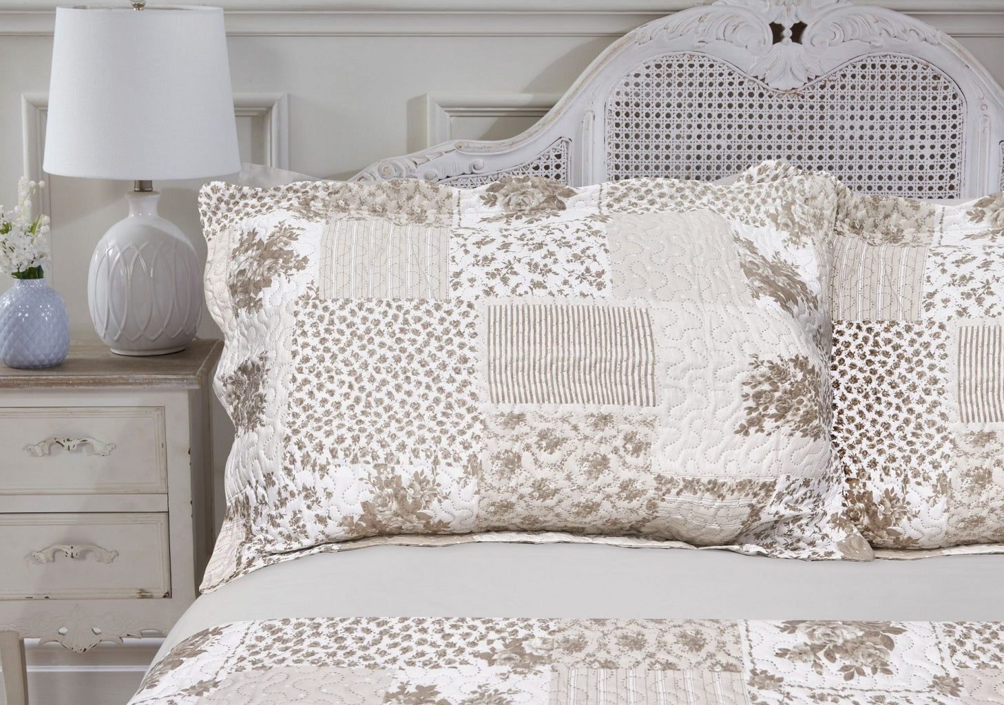 Shabby Chic Quilted Bedspread + Pillowshams Set, Double, Cotswold Natural