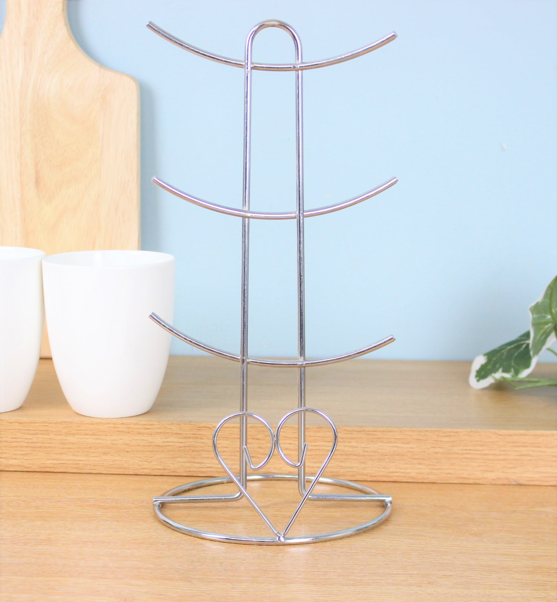 SIL's Kitchen Roll Holder and 6 Mug Tree Holder is a minimalist styled kitchenware accessory, with a metal heart shaped at its base.