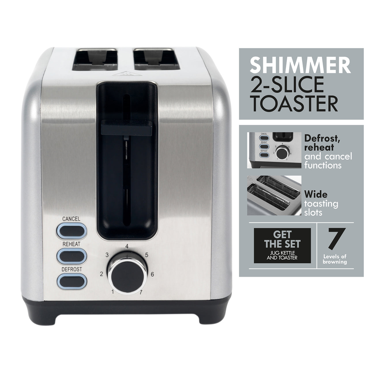 - The 2 Slice Toaster is beautifully constructed in Silver color Finished with Accents around the top ensuring the toaster compliments all types of kitchen.