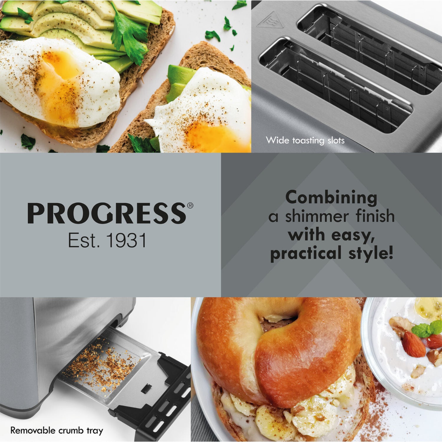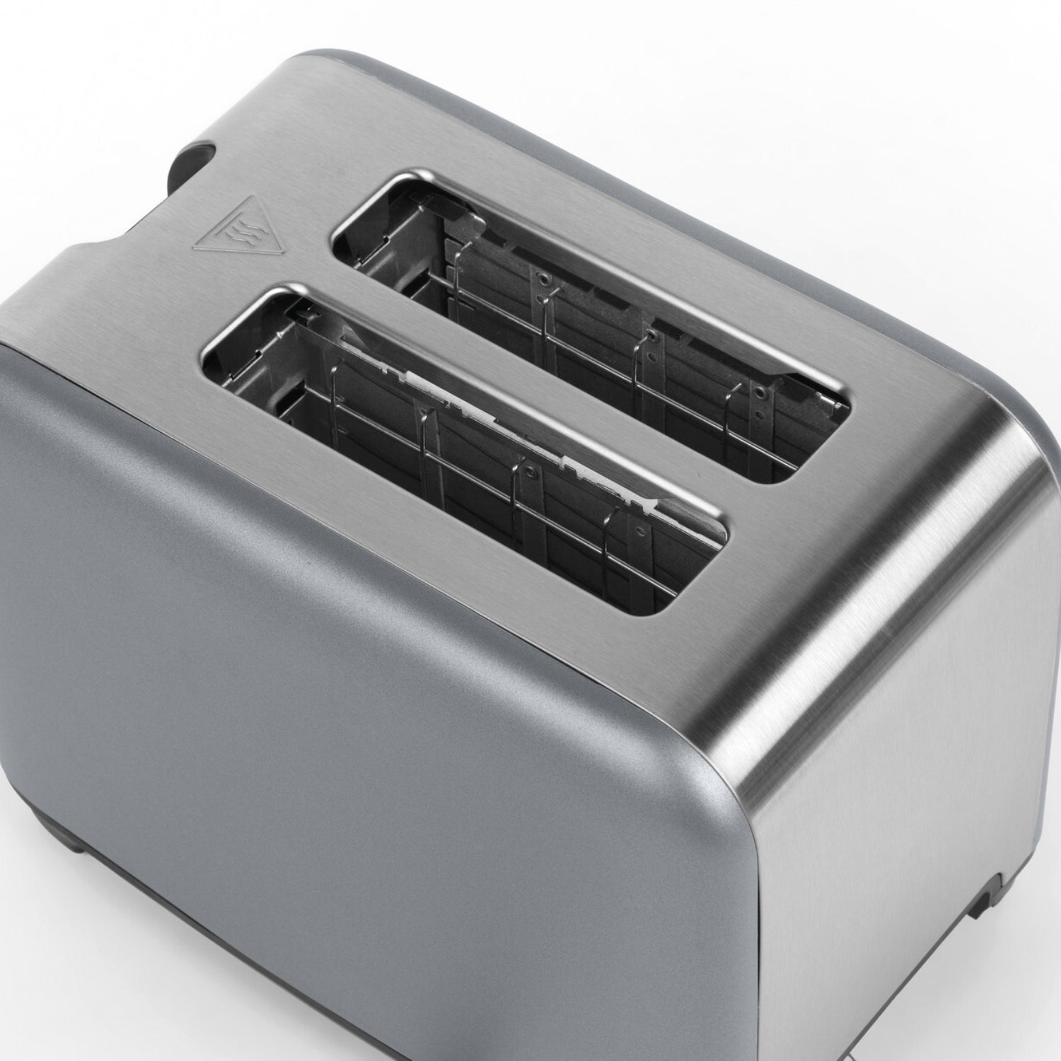 The 2 Slice Toaster combines stylish looks with practical features. Silver color Finished with Accents details to complement any kitchen space. Designed with large, deep toasting slots and 6 browning levels it is perfect for all types of bread and bagels. The reheat function is ideal for reheating toast without over-browning. Add on variable-width bread slots and this toaster can handle tiny crumpets, burly bagels, and beyond. The removable easy-slide Crumb tray makes it effortless to keep the toaster clean while non-slip feet ensure it stays precisely where you want it for less mess. Internal cord storage helps keep your worktop tidy.