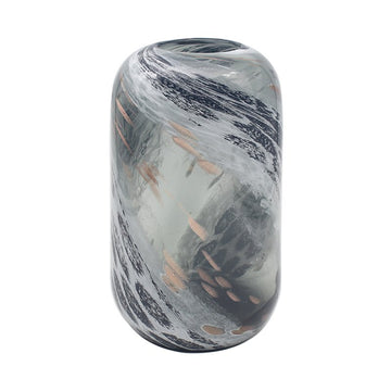 Elevate your home decor with our sophisticated handcrafted glass vase, featuring a stunning abstract design with smoky gray swirls and subtle copper gold accents.