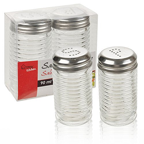 2Pcs Ribbed Glass Salt & Pepper Shakers Set
