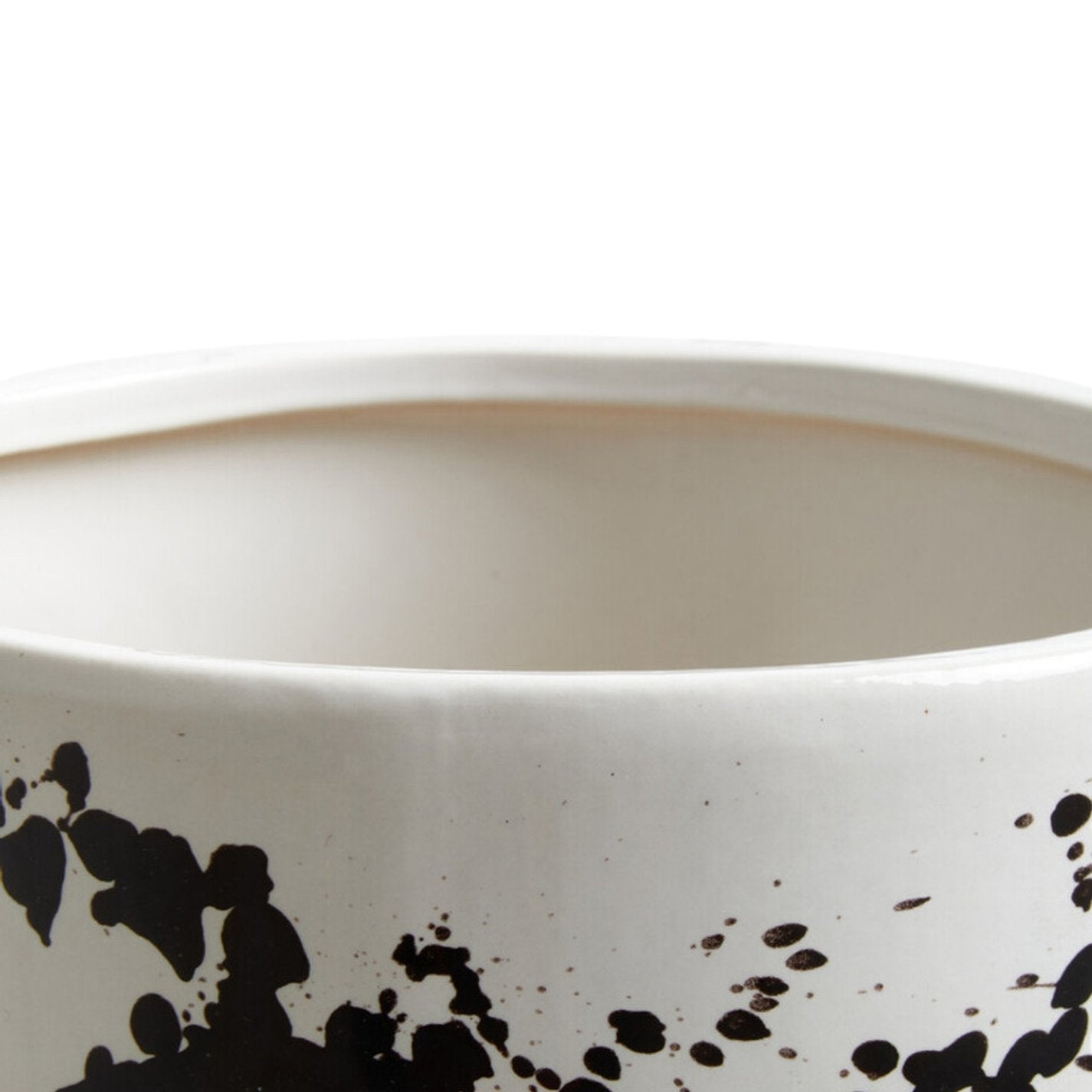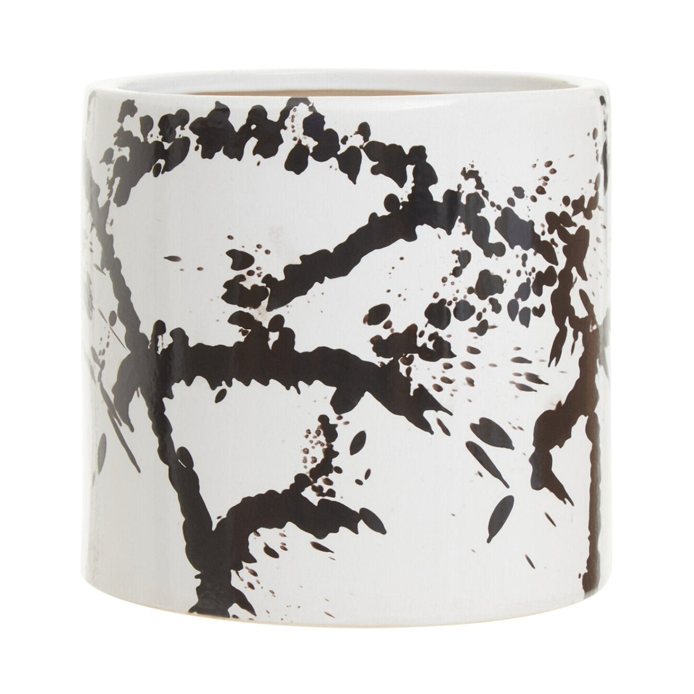- Large ceramic planter with black and white paint splash design