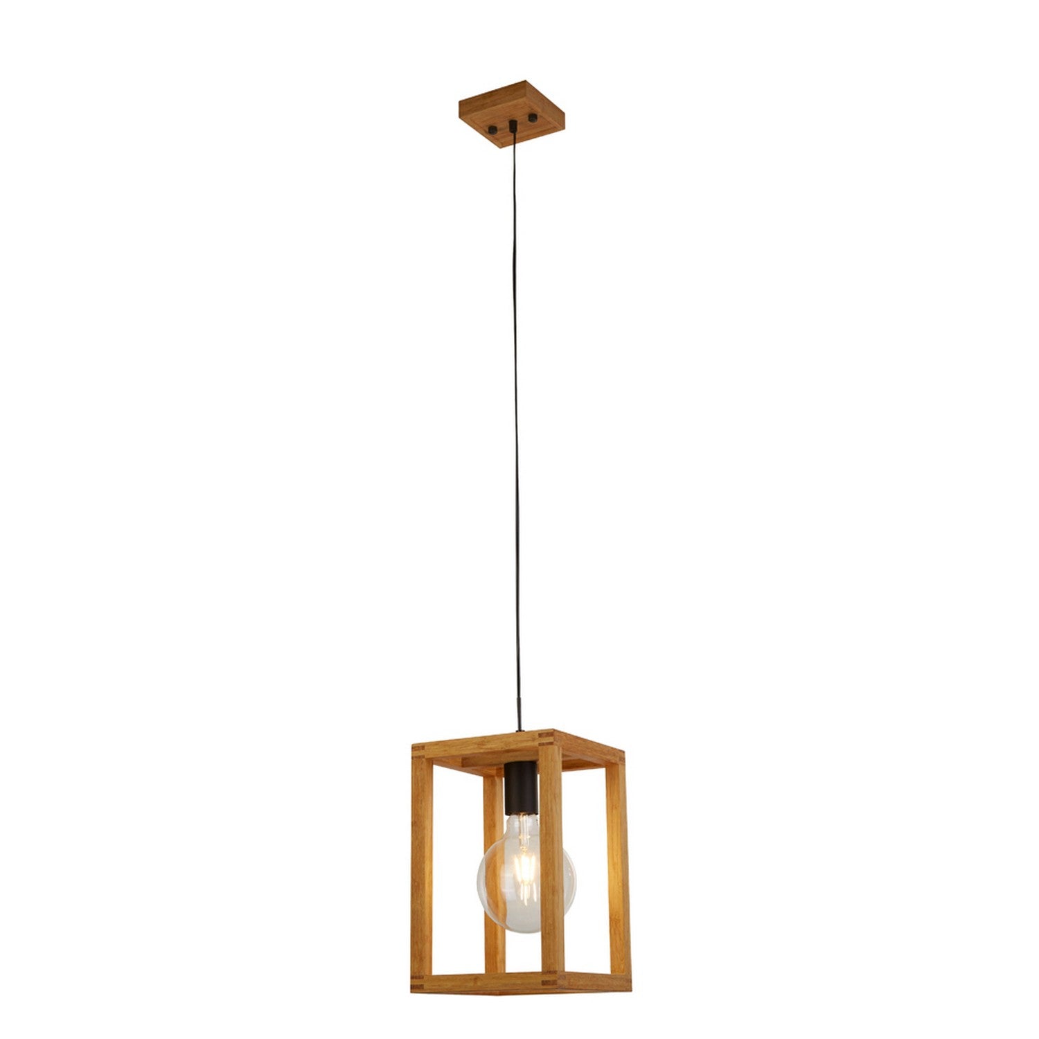 The Square wooden cage ceiling pendant adds a modern yet rustic look to any room. With an exposed bulb within the frame, this light has an industrial feel and would look great with any decor.