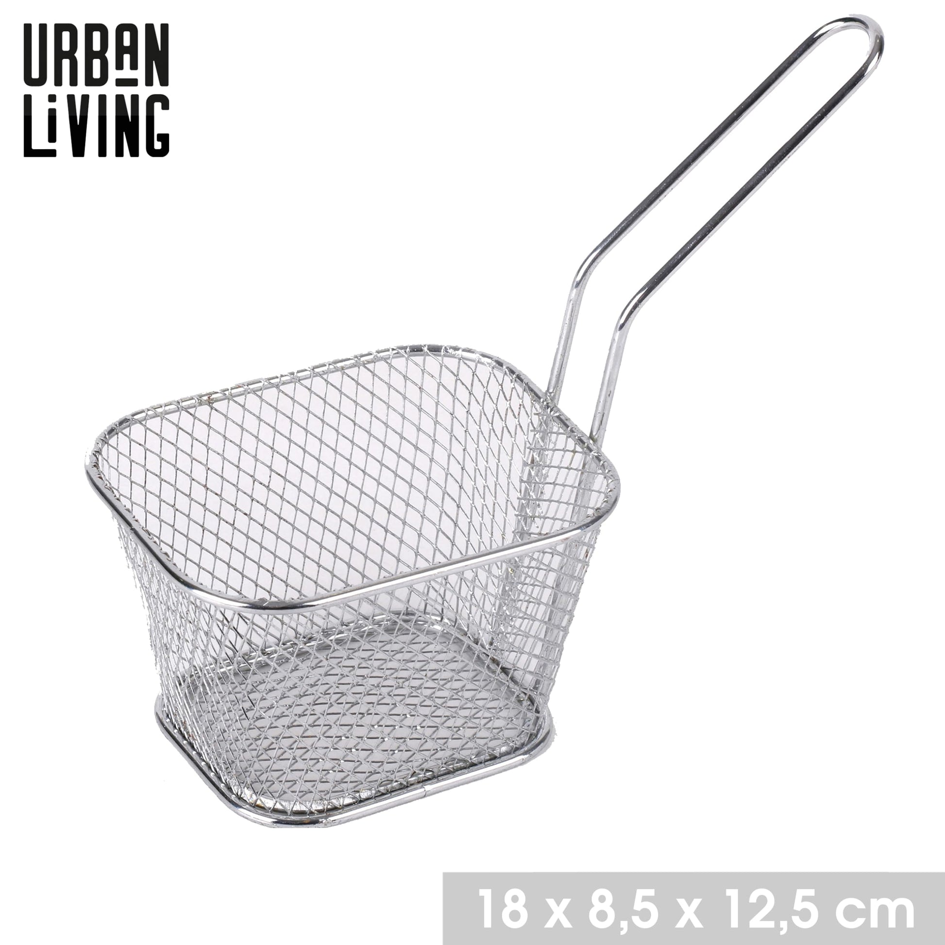 This square shaped stainless steel Mini Chip Basket with a long handle is perfect for serving small side orders such as chips or tapas. It is ideal for presenting fries, snacks, and appetizers with a modern touch. Perfect for restaurants, bars, and home use.