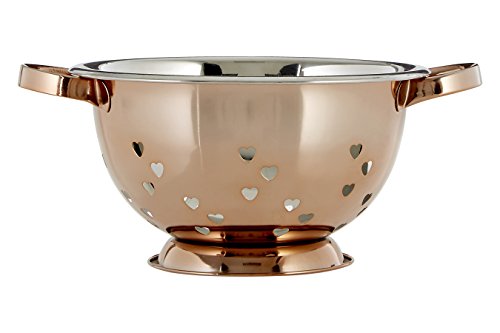 Rose gold stainless steel colander with a unique and stylish Hearts design and 24cm diameter. A great and simple way to drain your foods such as pasta, vegetables and rice etc.