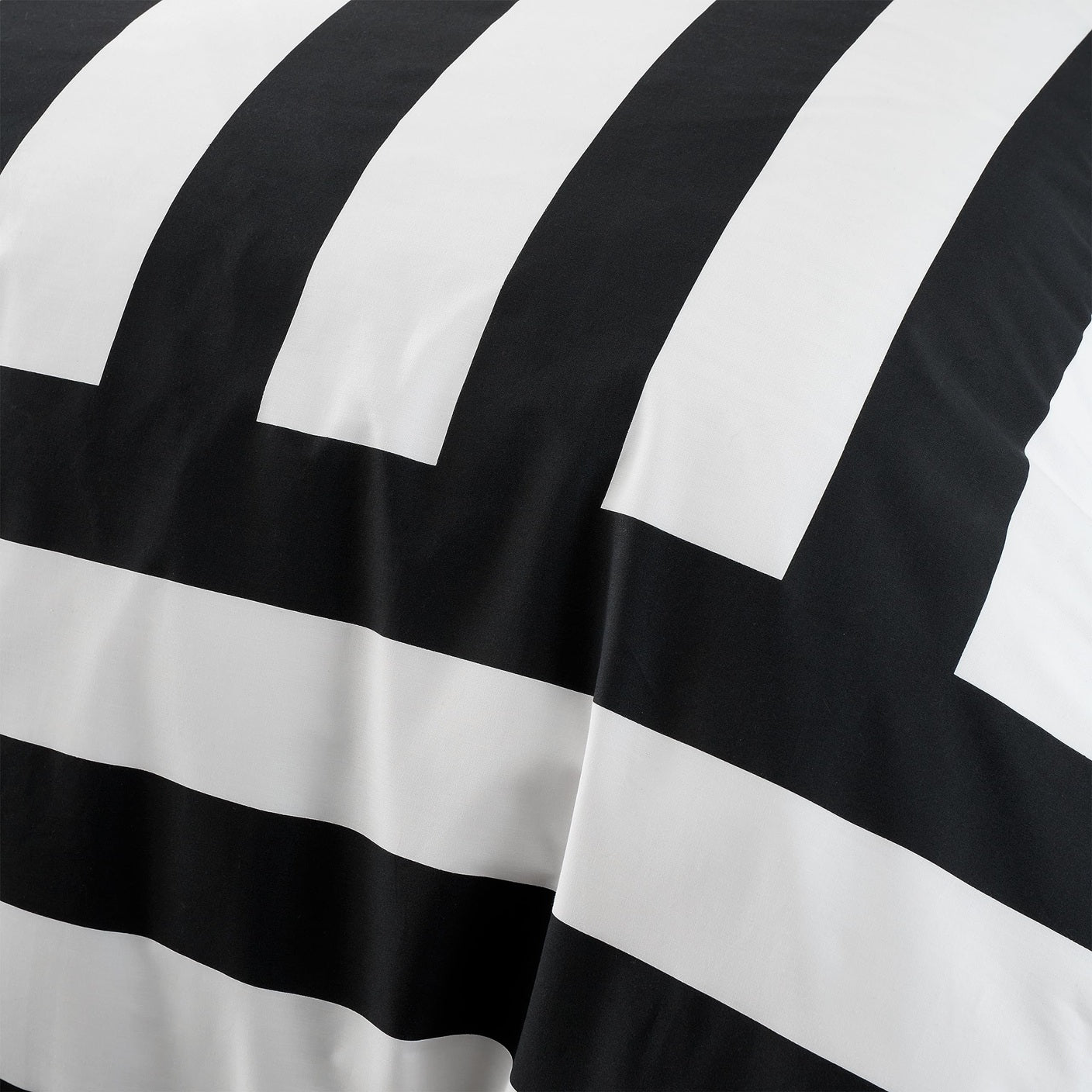 This luxury, designer and 100% cotton percale duvet cover set has bold black & white striped design on it which is the ideal piece to create a signature style in the modern home. Material: 100% Cotton Percale (180 Thread Count), it is machine washable. This set includes 1 x super king duvet cover and 2 x pillowcases, duvet cover size is 260cm x 220cm (102" x 87") (Approx) and pillowcase size is 48cm x 74cm (19" x 29")(Approx).