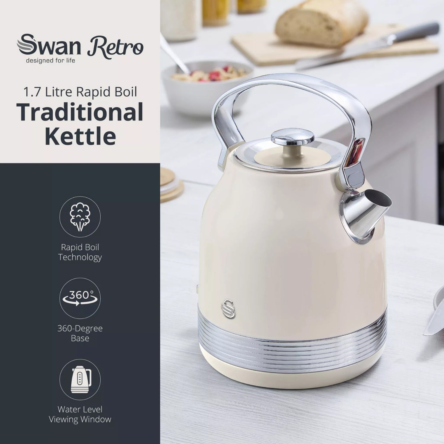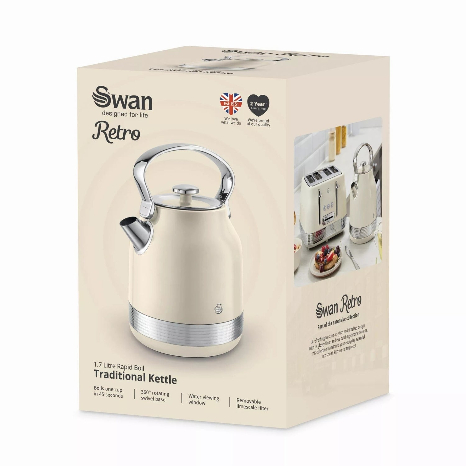 Swan Retro Traditional Kettle Electric 1.7L Chantilly Cream