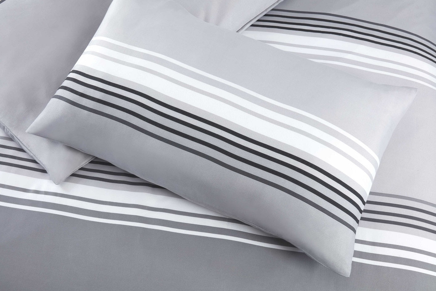 Teenagers Reversible Stiped Duvet Cover Set, Single, Grey & Black