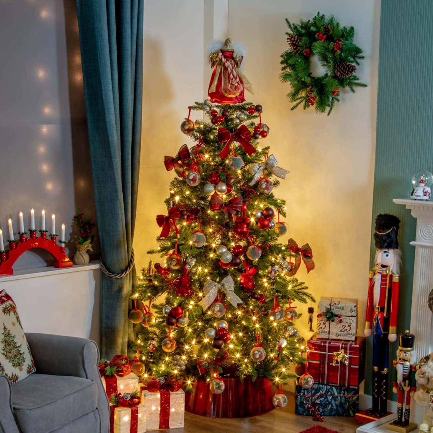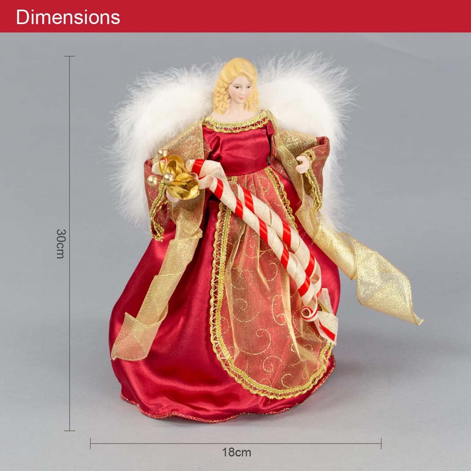 This 30cm (12") angel tree topper has a lovely red-colored dress that will sit proudly upon the top of any tree year after year. It could become the focal point of the display and the first thing the younger family members want to find when the decorations come out and the one everyone will want to have the privilege of putting on.
