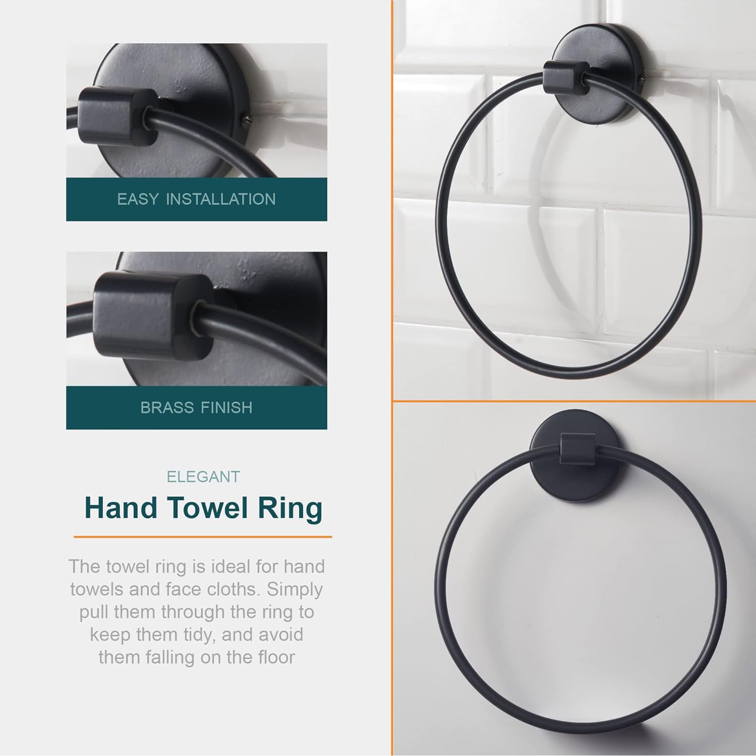 - Hand Towel Ring - The towel ring is ideal for hand towels and face cloths. Simply pull them through the ring to keep them tidy and avoid them falling on the floor.