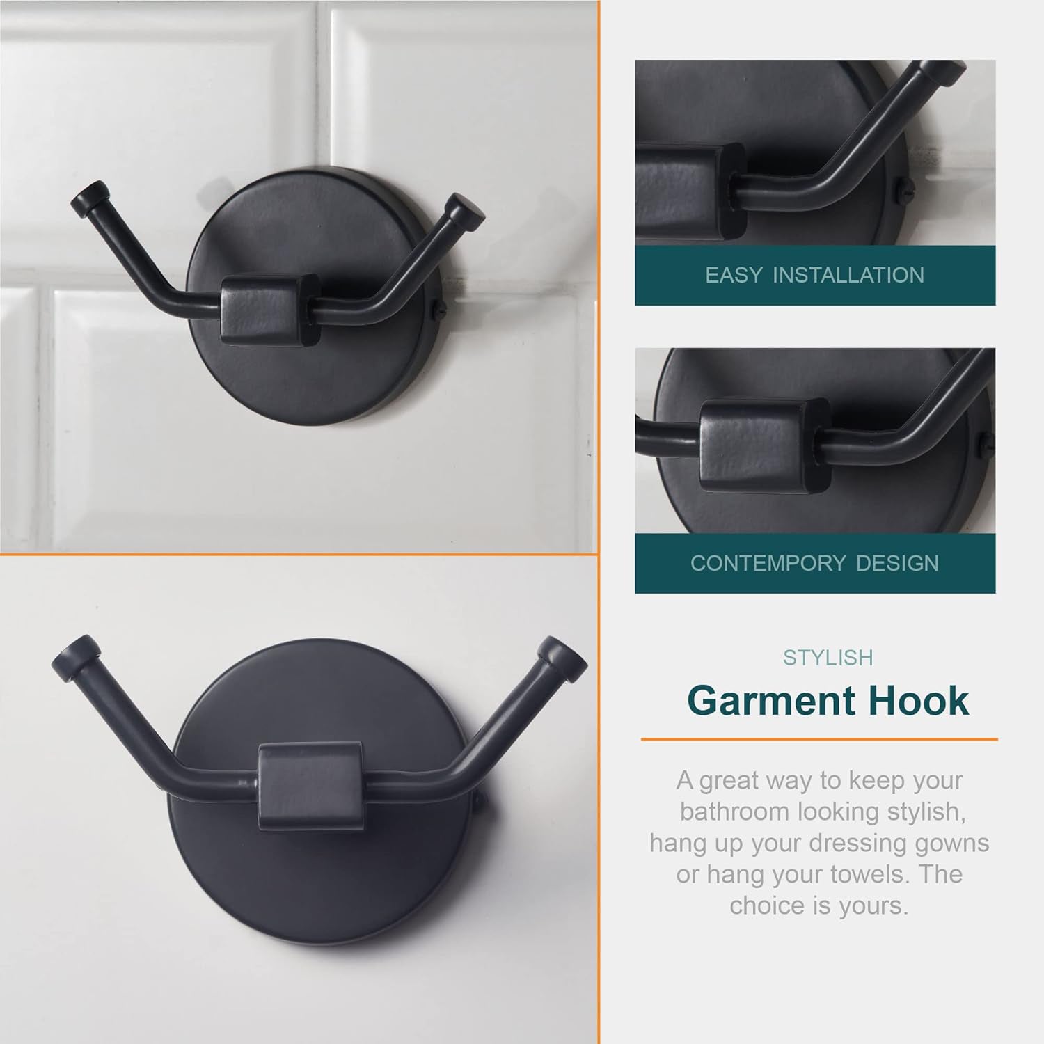 - Garment Hook - A great way to keep your bathroom looking stylish, hang up your bathrobe or clothes.