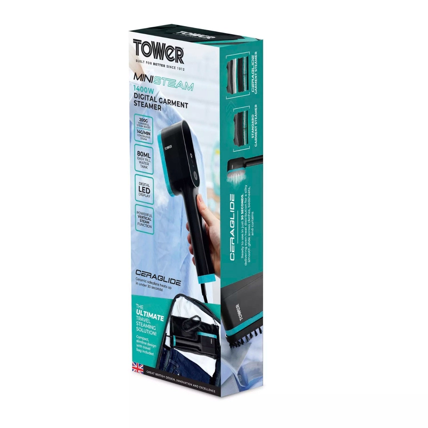 The Tower Ceraglide Digital Handheld Garment Steamer offers a quick and convenient way to keep clothes looking fresh and crease-free. With 1,400W of power and a Ceraglide ceramic soleplate, it delivers fast heat-up and smooth results on all fabric types.