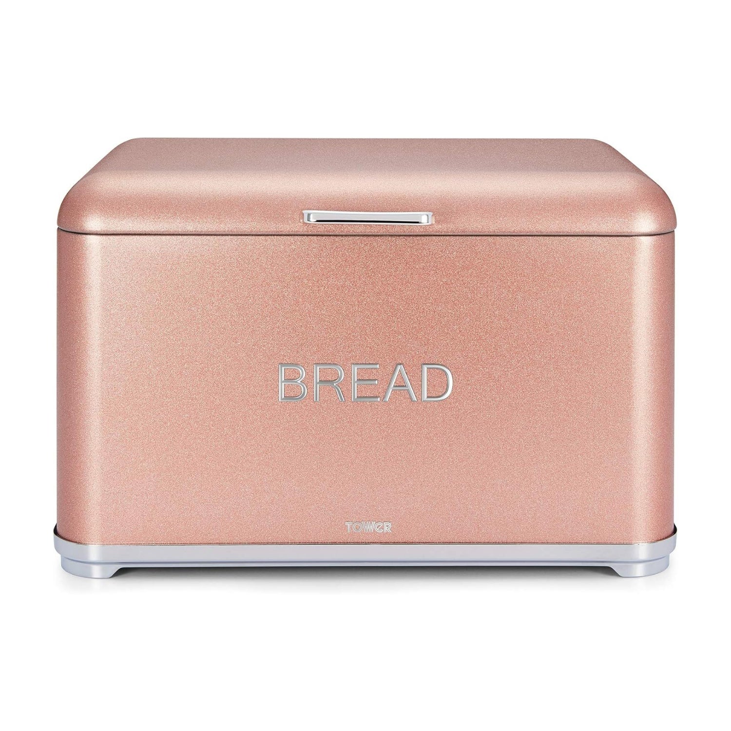 Add some glamour to your kitchen with this stylish pink bread bin from the Tower Glitz range. The sparkling glitter-like design is complimented by a chrome base and handle, providing a contemporary look and feel that really makes a statement. Its rectangular shape and large capacity provide enough space to fit a wide range of different-sized delicious baked goods, including bread, muffins, and crumpets, all of which will be neatly stored away and kept fresh.