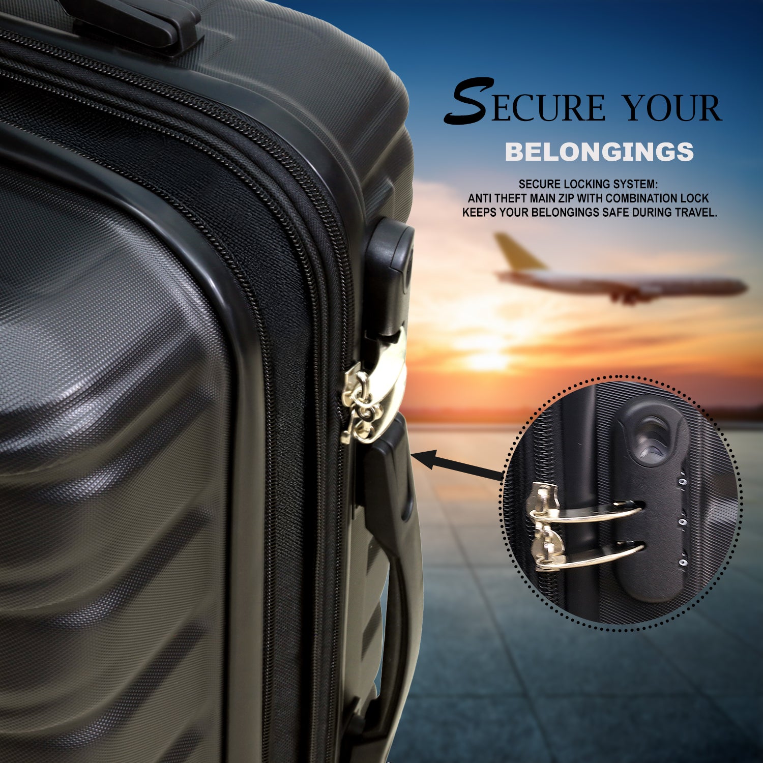- Secure Locking System: Anti theft main zip with combination lock keeps your belongings safe during travel.