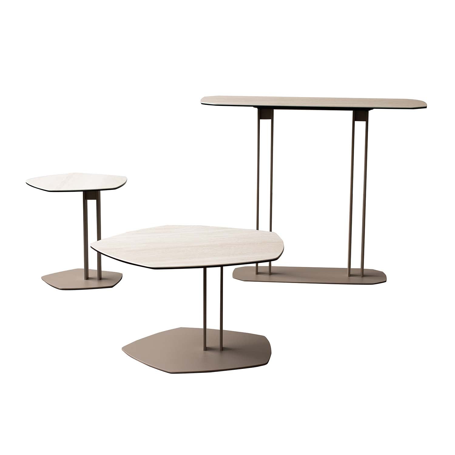 Elevate your living space with this modern side table featuring a 3mm ceramic and 6mm glass fused top, set on a robust metal base. The pentagon-shaped tabletop in a light stone effect brings a clean, contemporary touch, while the cappuccino frame adds neutral elegance. Measuring 45cm wide and 45cm tall, it's perfect for compact spaces, providing a stylish surface for drinks, books, or decor accents. Assembly required.