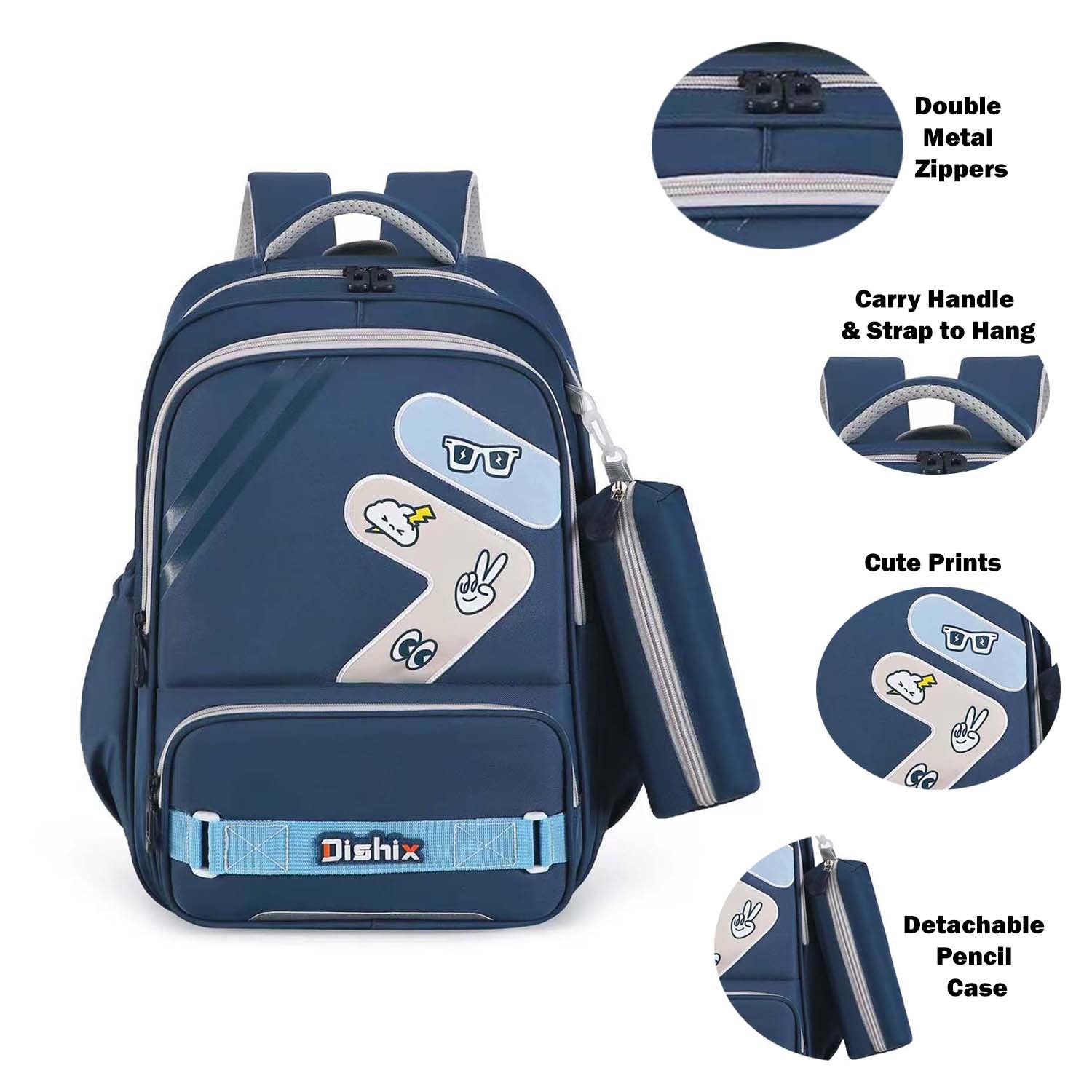 Add style and functionality to school days with the Blue School Backpack, designed for students who love organization and comfort. Made from durable nylon with reinforced stitching, this backpack features a matching detachable pencil case, double zippers, and multiple compartments including an inner pocket and front pocket for easy access. Elasticized side pockets hold bottles or umbrellas securely, while breathable padded straps ensure all-day comfort. Perfect for school, travel, or casual use.