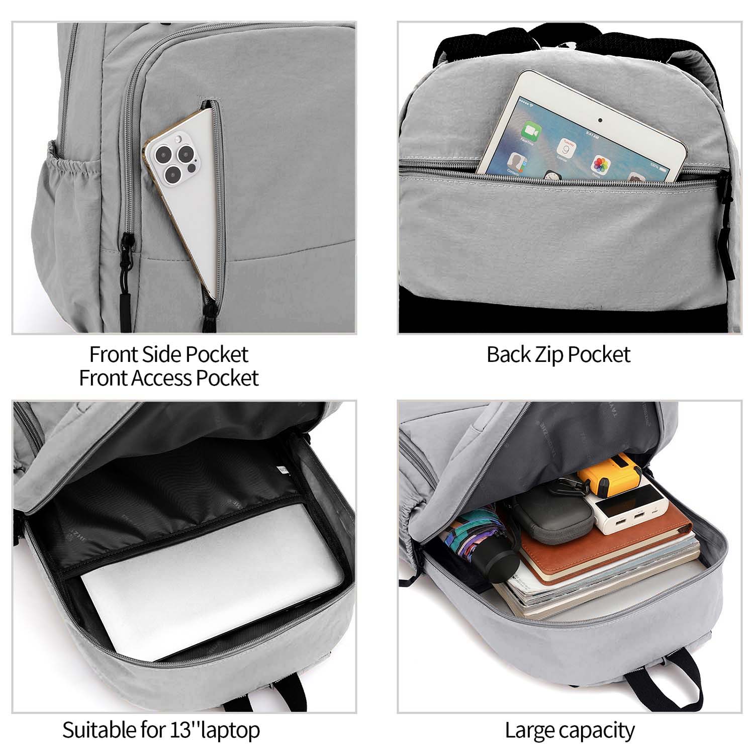 Laptop Backpack with Anti-Theft Pocket, Grey