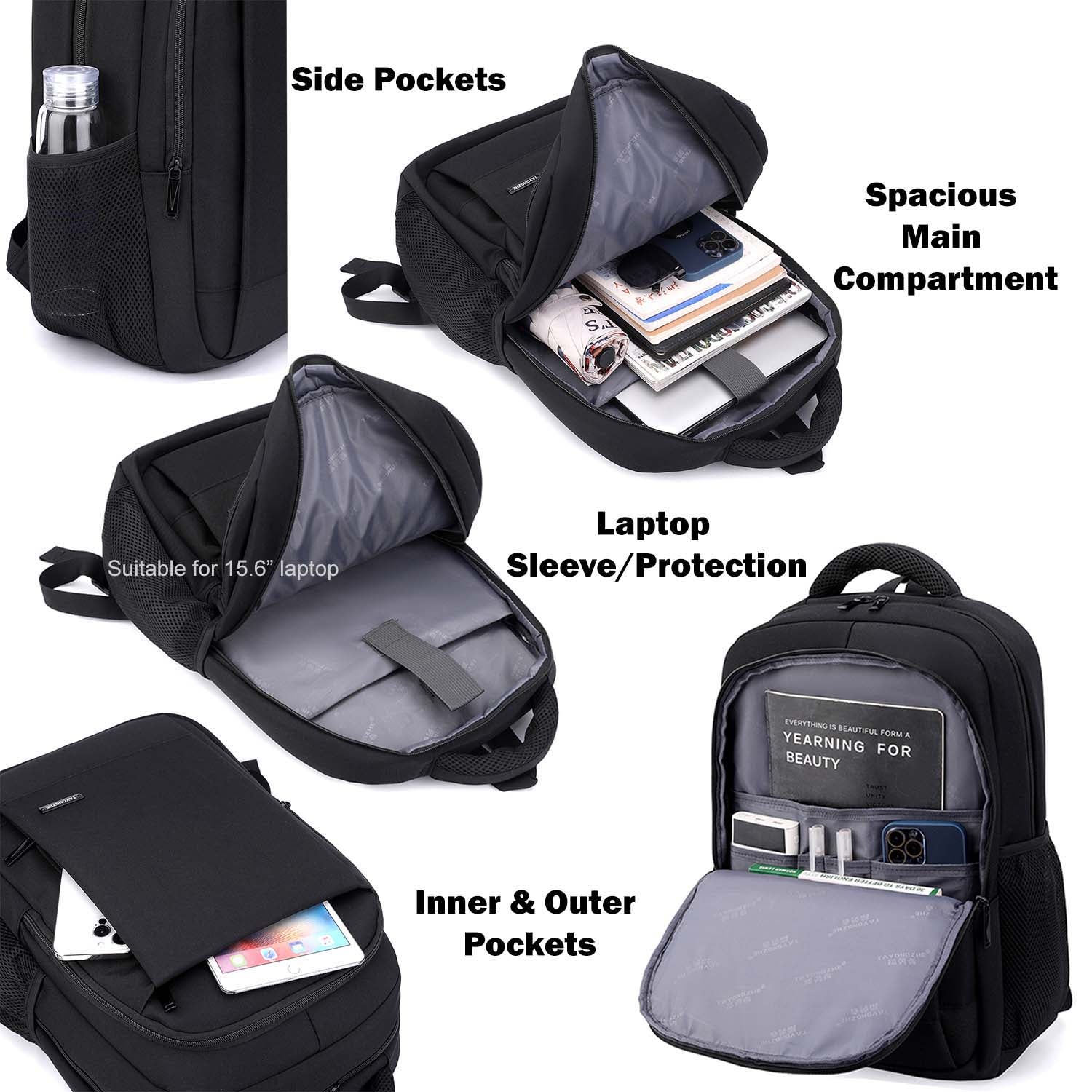 - Spacious backpack with a dedicated padded laptop compartment secured by Velcro strap (Fits 15.6" Laptops); ideal for work, school, and travel.
