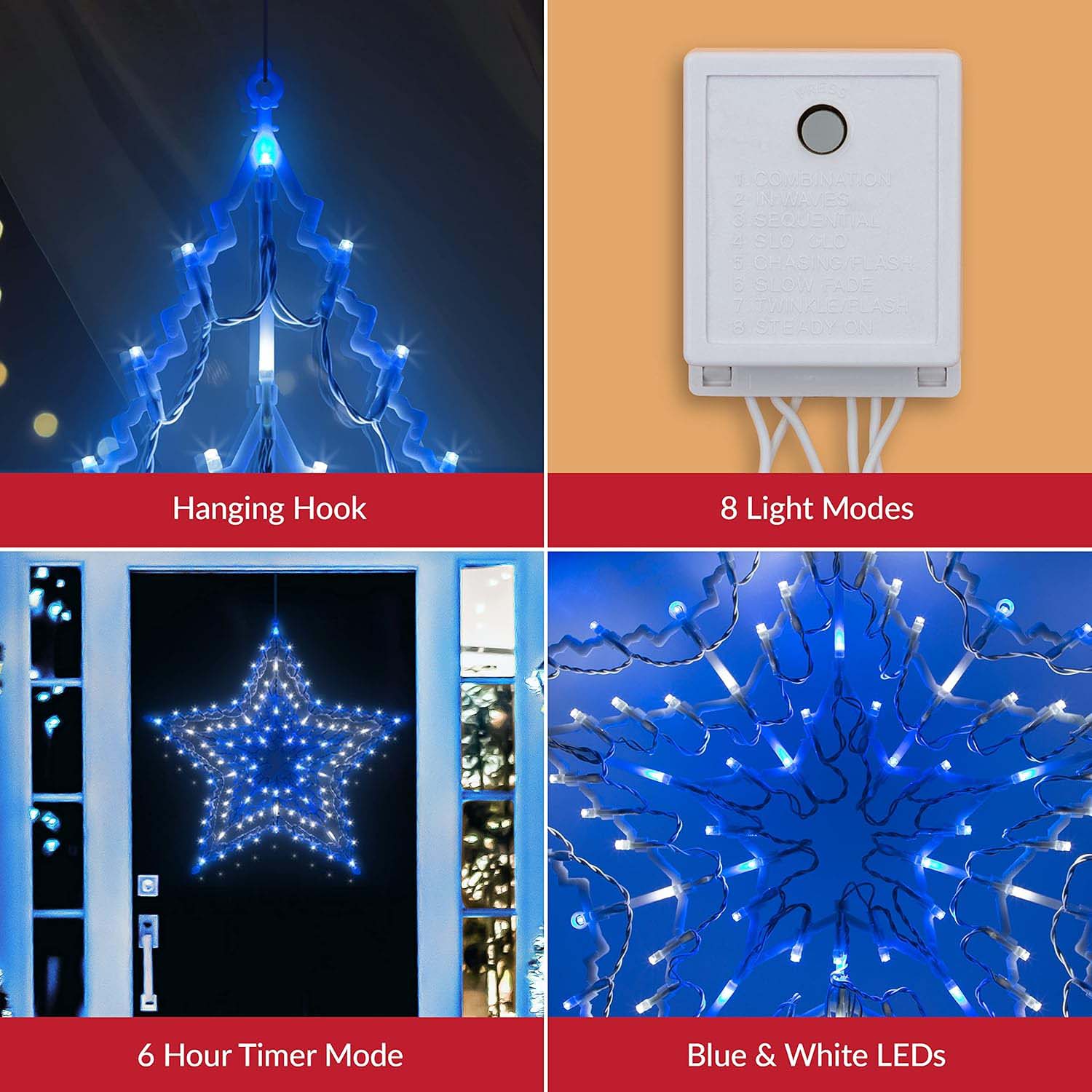 Ultra Bright Blue White LED Star Christmas Window Light Decoration