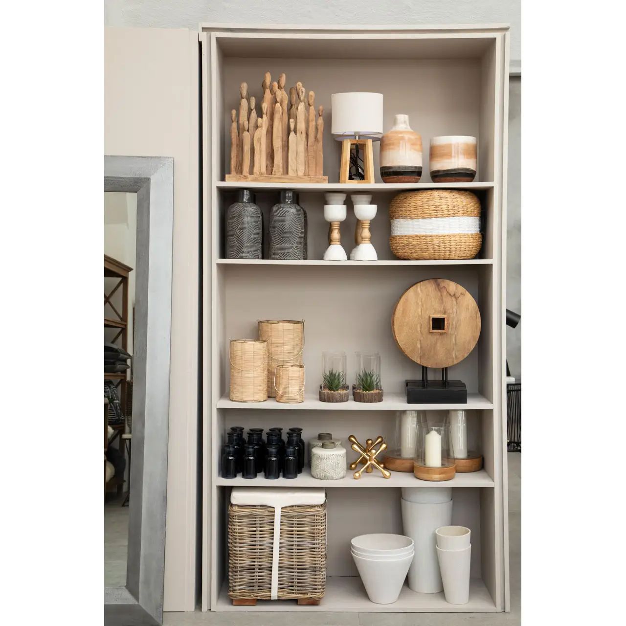 With a natural finish exuding rustic elegance, this wooden sculpture showcases multi-sized human figures standing on a rectangular base. The piece features artistic workmanship and intricately carved detailing.