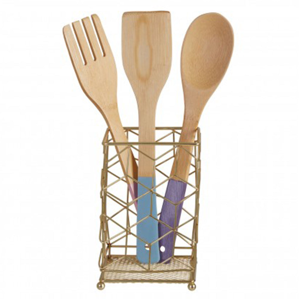 - Store kitchen utensils neatly in this matte gold utensil holder to keep worktops tidy and organised.