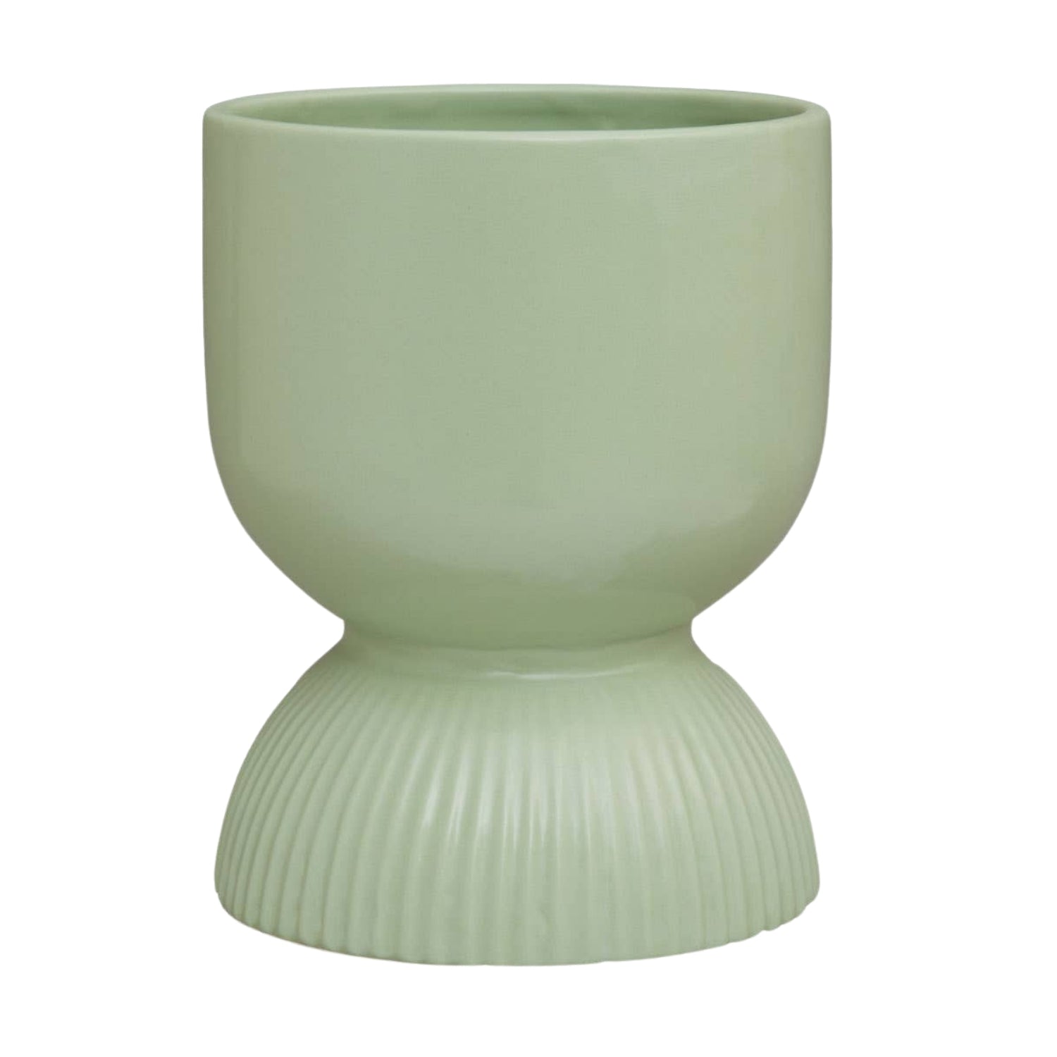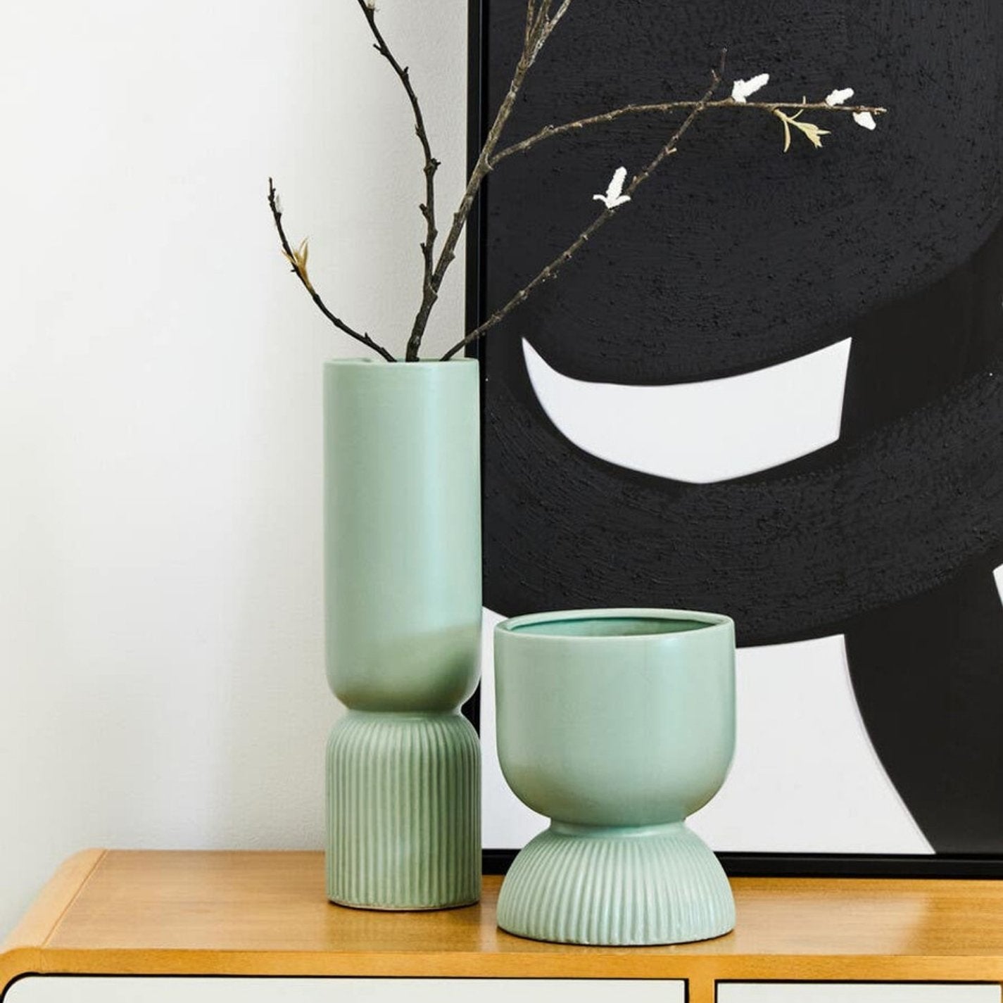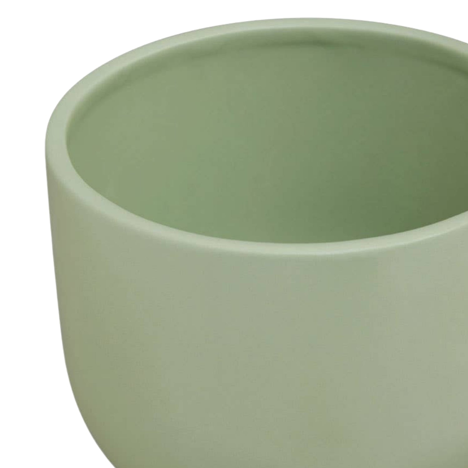 This saga green ceramic planter adds a refreshing pop of colour and modern style to any interior or outdoor space. Crafted with a smooth ceramic finish, it features a tapered silhouette and a round, sturdy base for stability. The spacious interior provides ample room for plants, making it both a functional and decorative choice for showcasing greenery.
