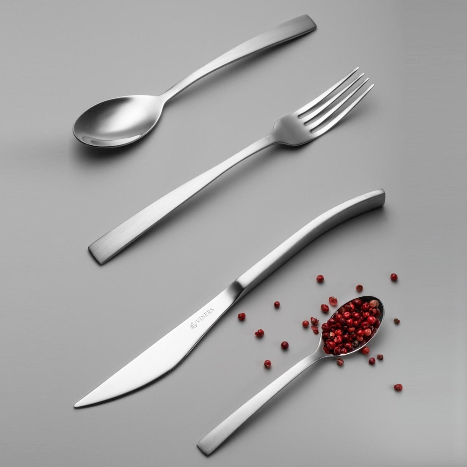 Bring understated elegance to your dining experience with this stylish cutlery set from Viners. Designed with wide handles with arcing base gives this set a unique design. This set offers both functionality and contemporary appeal. Made from premium 18/10 stainless steel, the rust-resistant pieces ensure long-lasting durability.