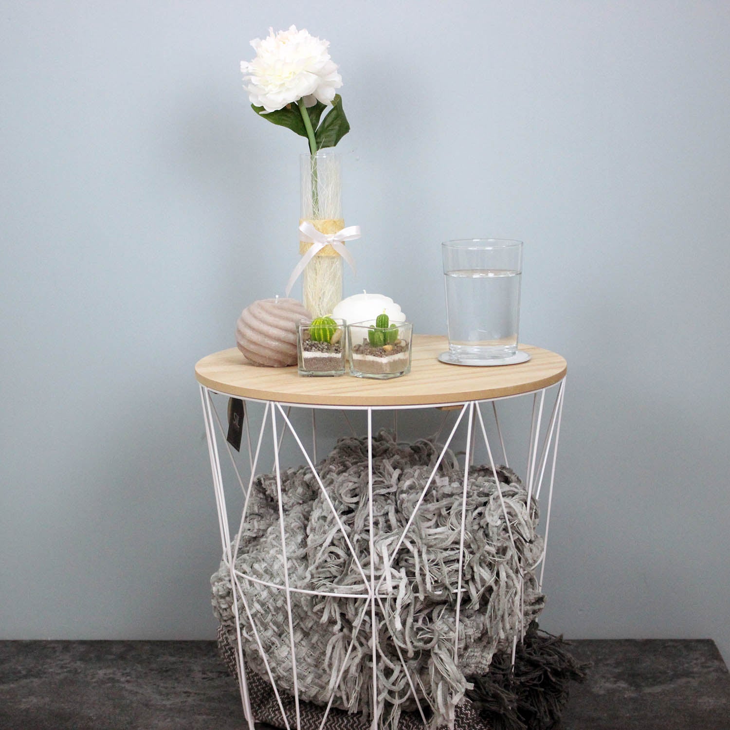 A novelty side/end table or place it on your bedside. Best use in the living room as an accent table. Very practical and space-saving with a removable top lid so you can place books or magazines inside. Durable iron wireframe structure and MDF board cover lid. Approx. Product Dimensions: 40 x 40 cm